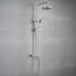 Blandaren har skållningsspärr och du kan enkelt växla mellan handdusch och takdusch genom att vrida på vredet termostatblandaren. Handduschen har tre strålbilder; normal, dimma och massage. Höjden på övre delen kan justeras, total höjd komplett takdusch 800 – 1200 mm.