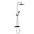 Komplett takduschset från Hafa med tunt fyrkantigt elegant duschhuvud i rostfritt stål, 250x250mm. Temostatblandare av mässing med skållningsspärr och Heat- Protection, som ger ett värmeskyddande hölje.