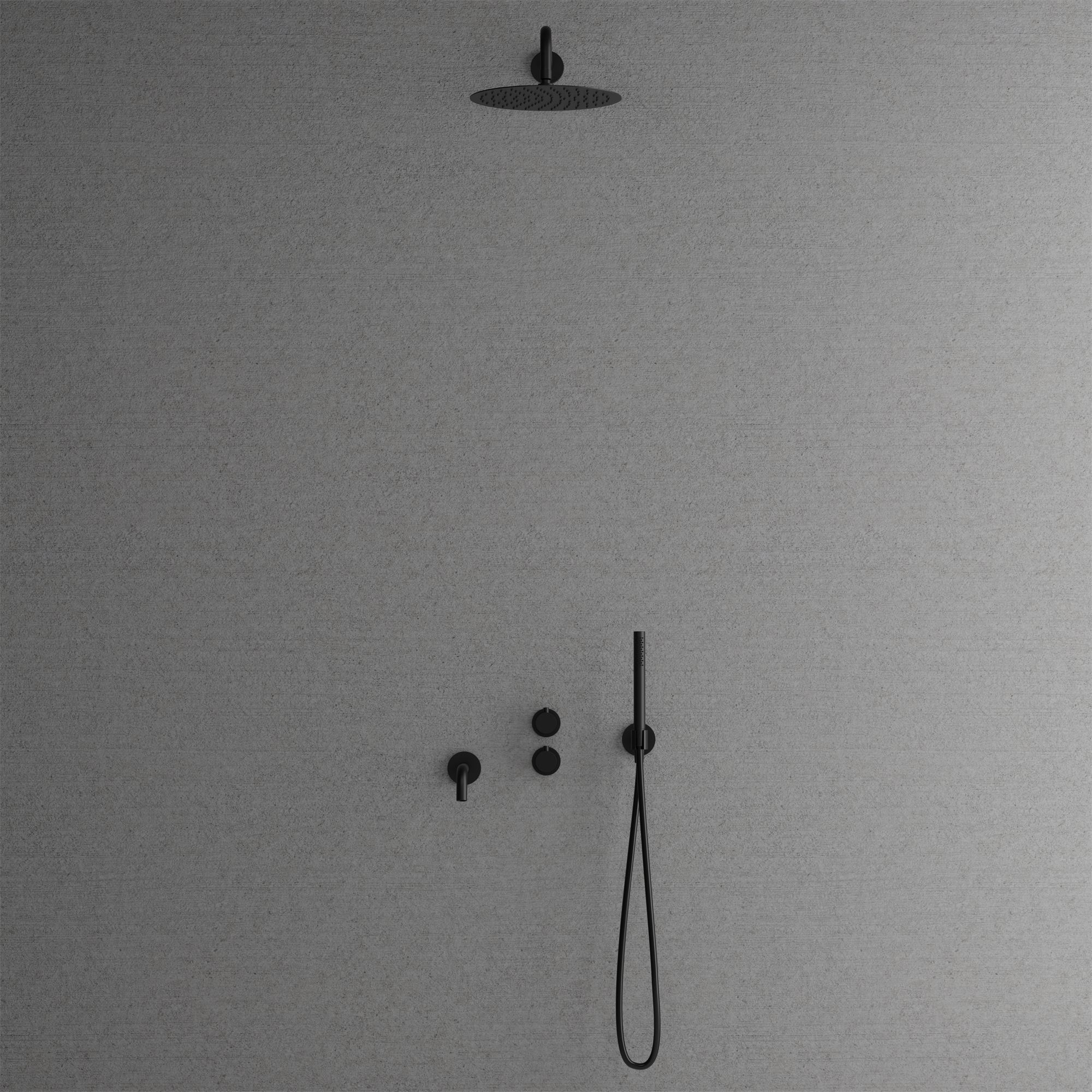 Takduschset Scandtap Steel Harmonized 3X är en termostatblandare för inbyggnad med eleganta slimmade detaljer.