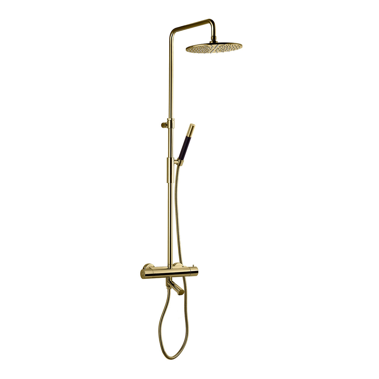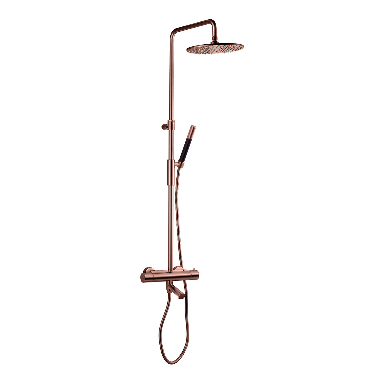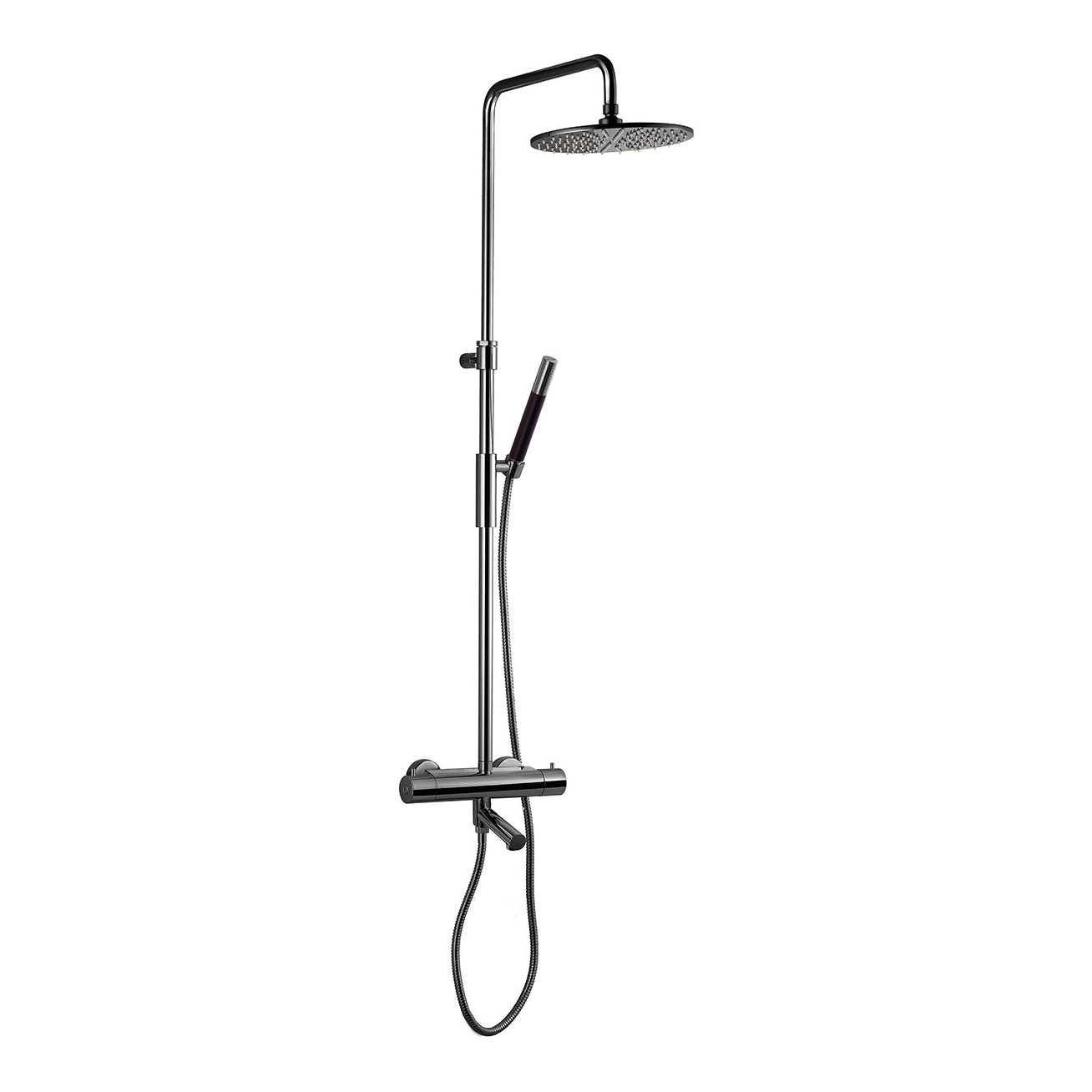 Takduschset Tapwell TVM2200-150 är ett komplett takduschset med tryckbalanserad tvågrepps termostatblandare, takdusch, handdusch och duschslang. Duschsetets höjd kan justeras mellan 1230-1710 mm.