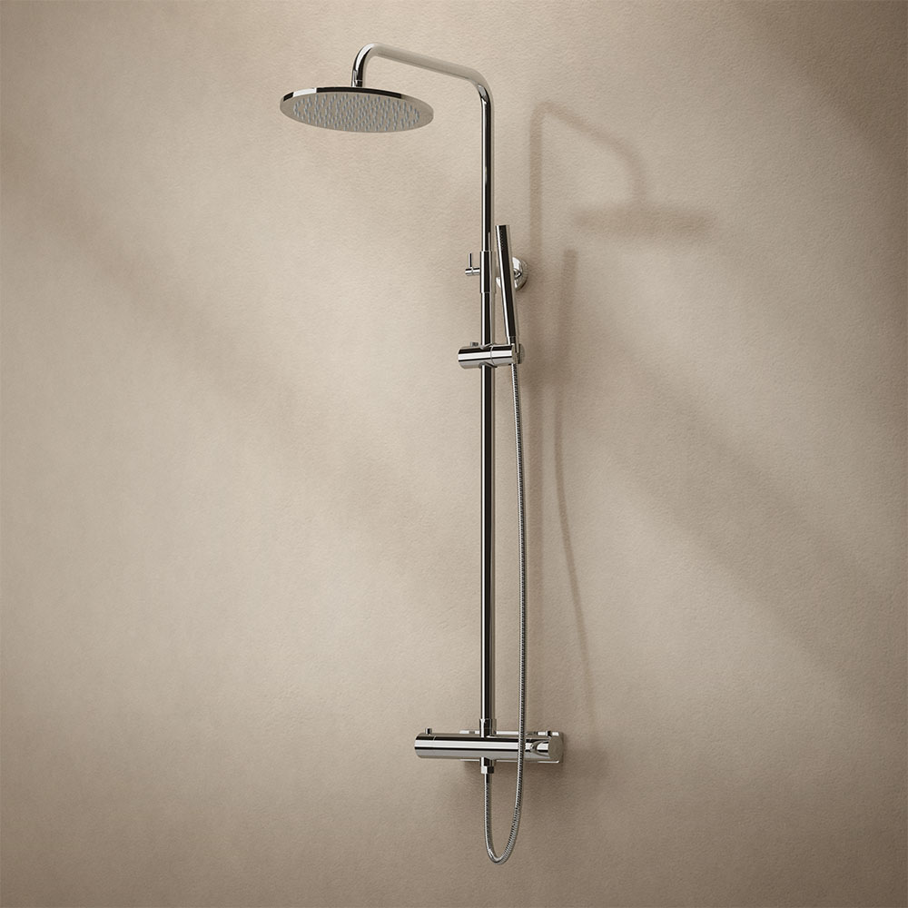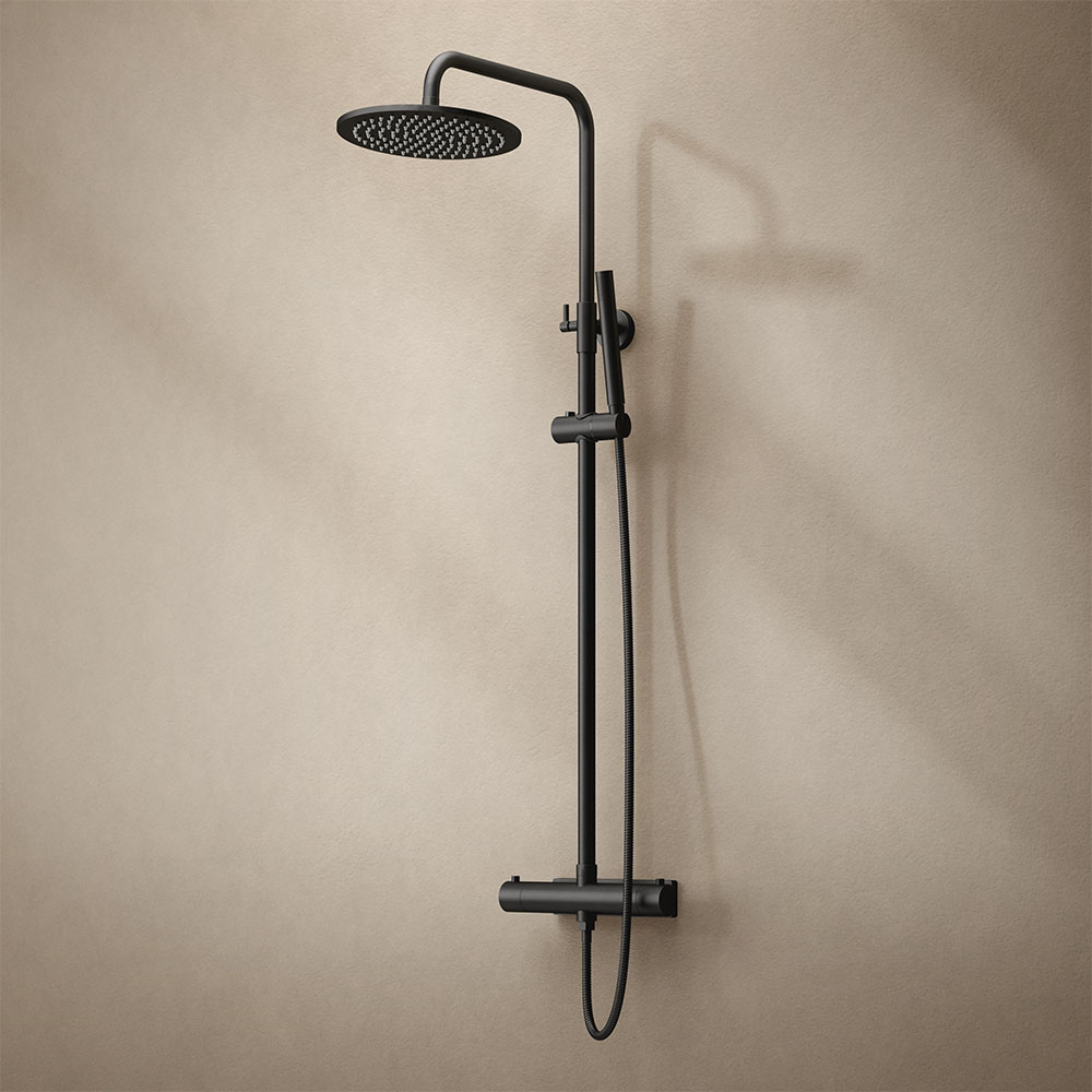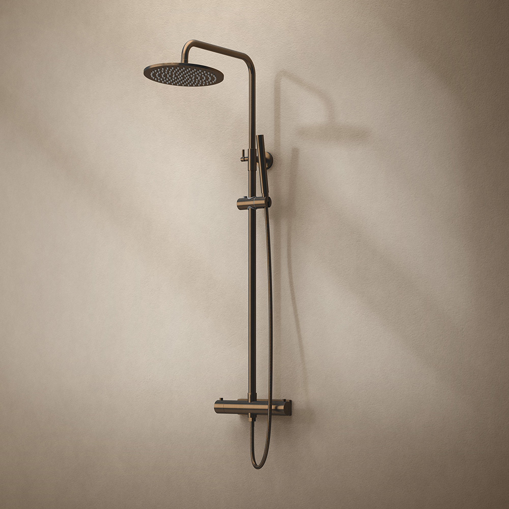 Westerbergs Natrix – komplett takdusch med termostatblandare. Taksil med antikalkfunktion. Finns i flera kulörer. Spärrknapp vid komforttemperatur 38°C. Komplettera med blandarfäste i samma kulör.