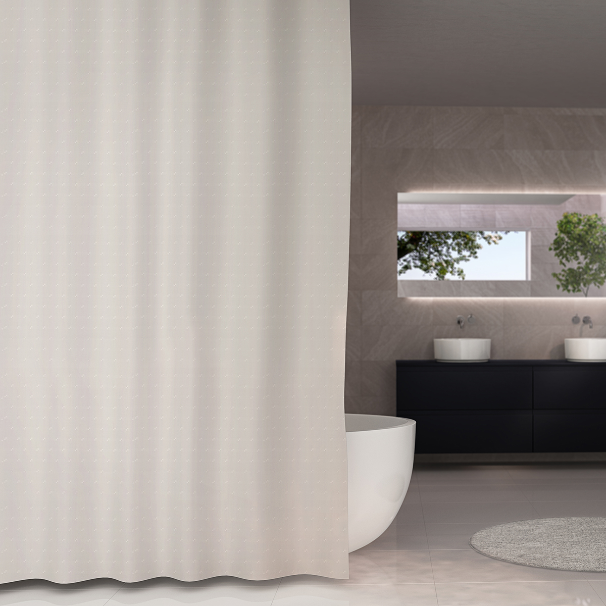 Duschdraperi Debel Dobby är ett snyggt duschdraperi i mjuk design.