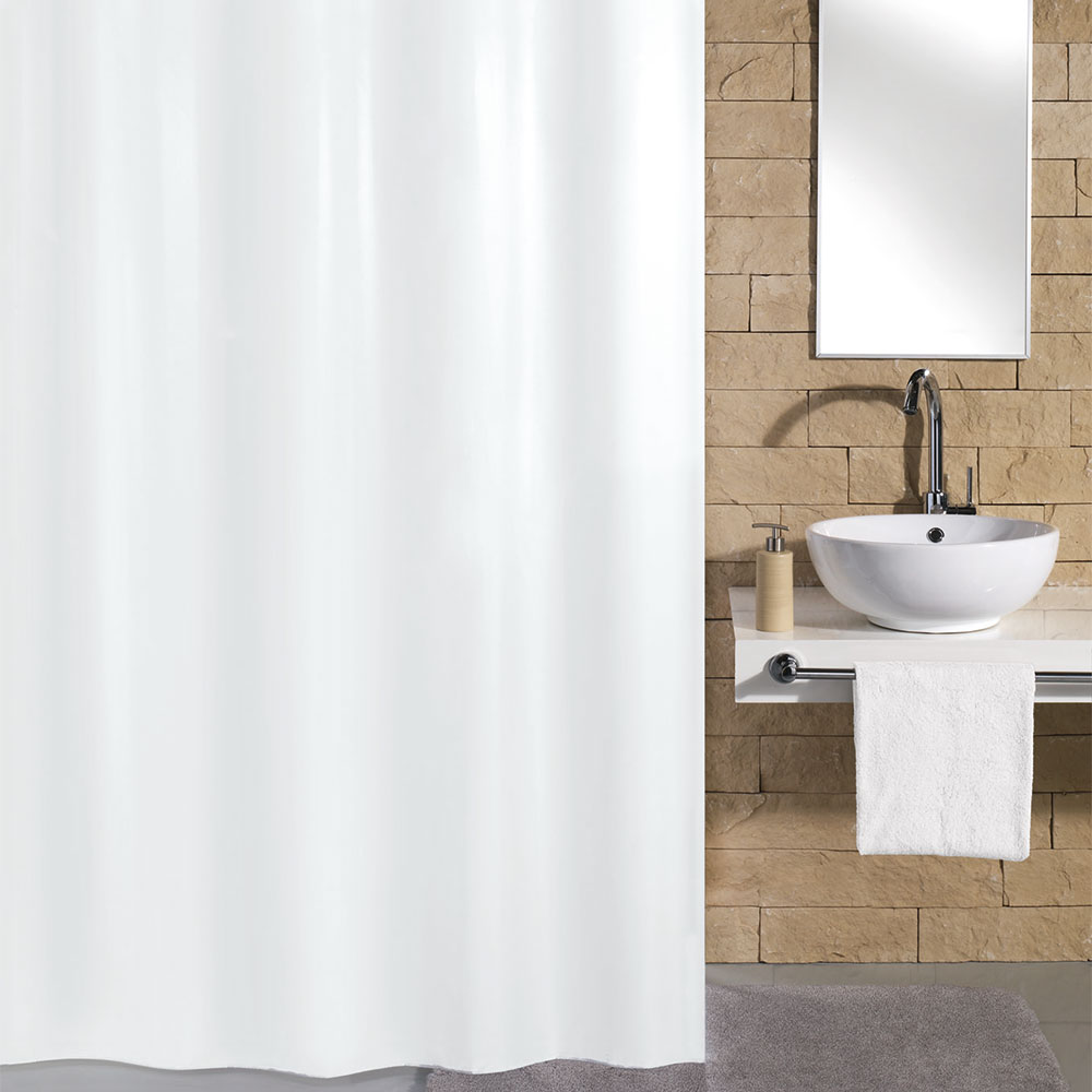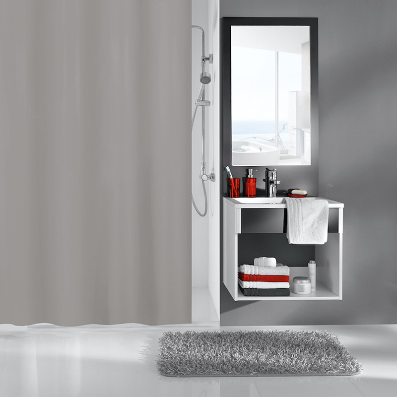 Duschdraperi Kito från Kleine Wolke är tillverkad av 100% polyester. Tyngdband är insydda i draperiets nedkant, som gör att draperiet håller sig på plats när du duschar.