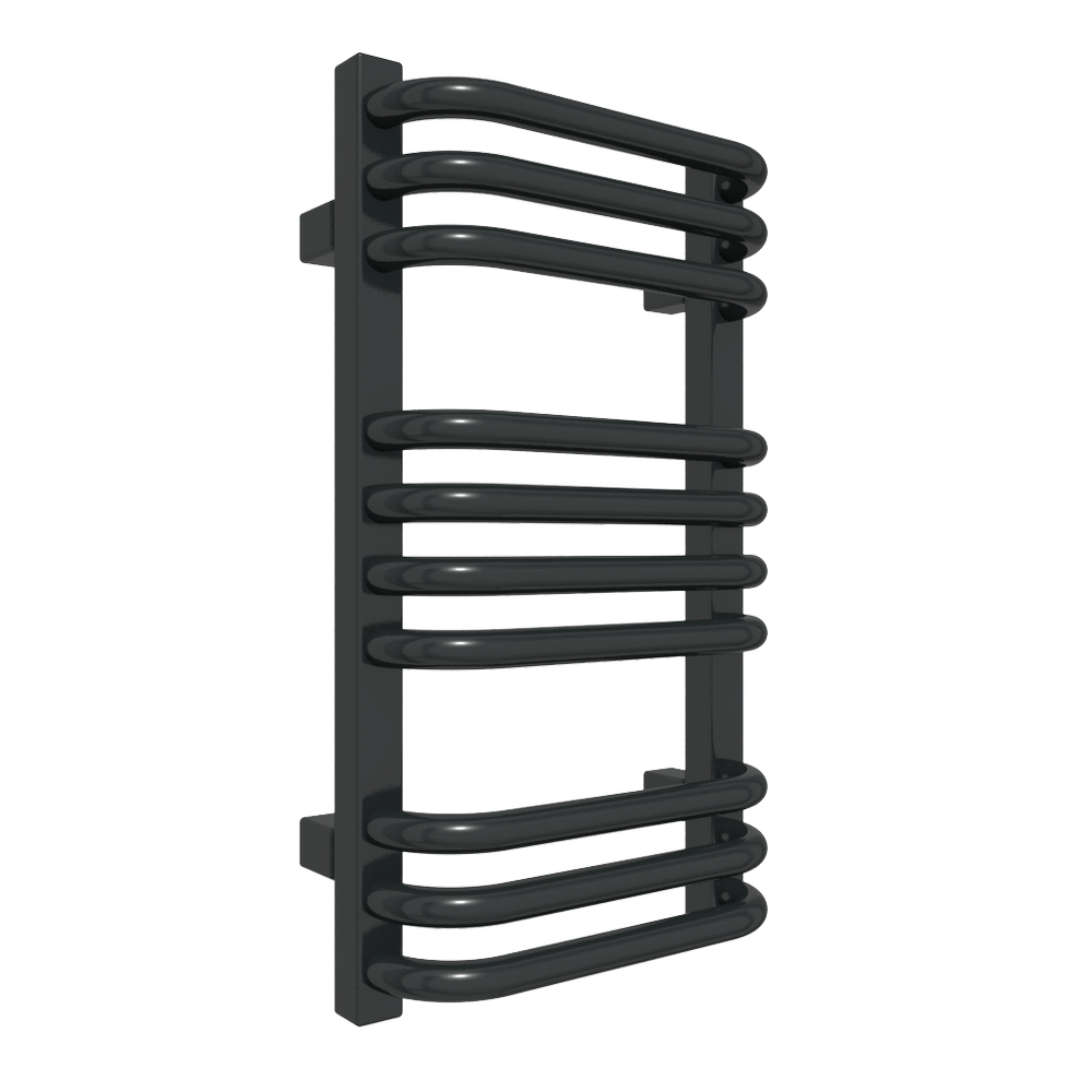 Med sina lätt utåtbuktande rör skapar Alex ett elegant intryck samtidigt som det blir lätt att komma åt, hänga upp och ta ner handdukarna. Handdukarna omfamnas av Alex och ges optimal möjlighet att torka effektivt.