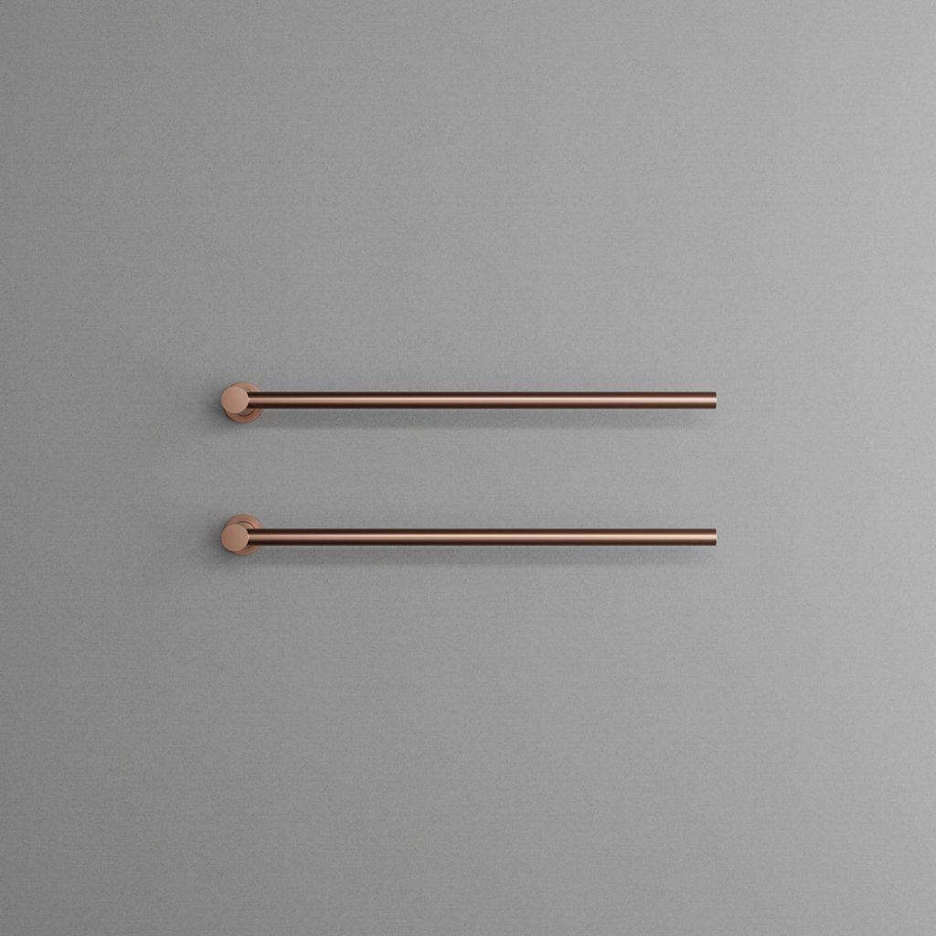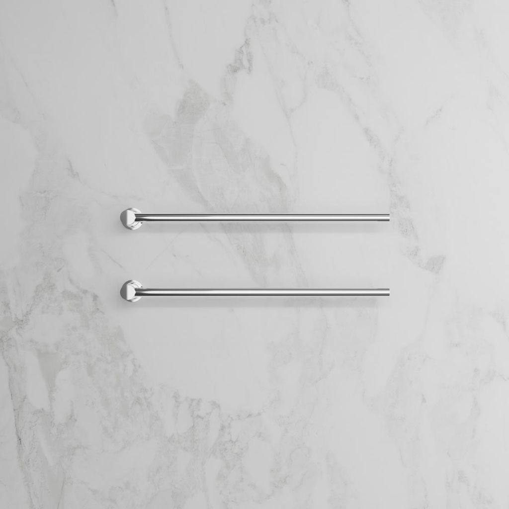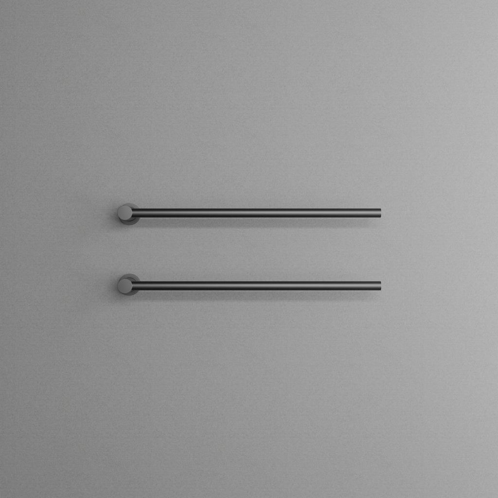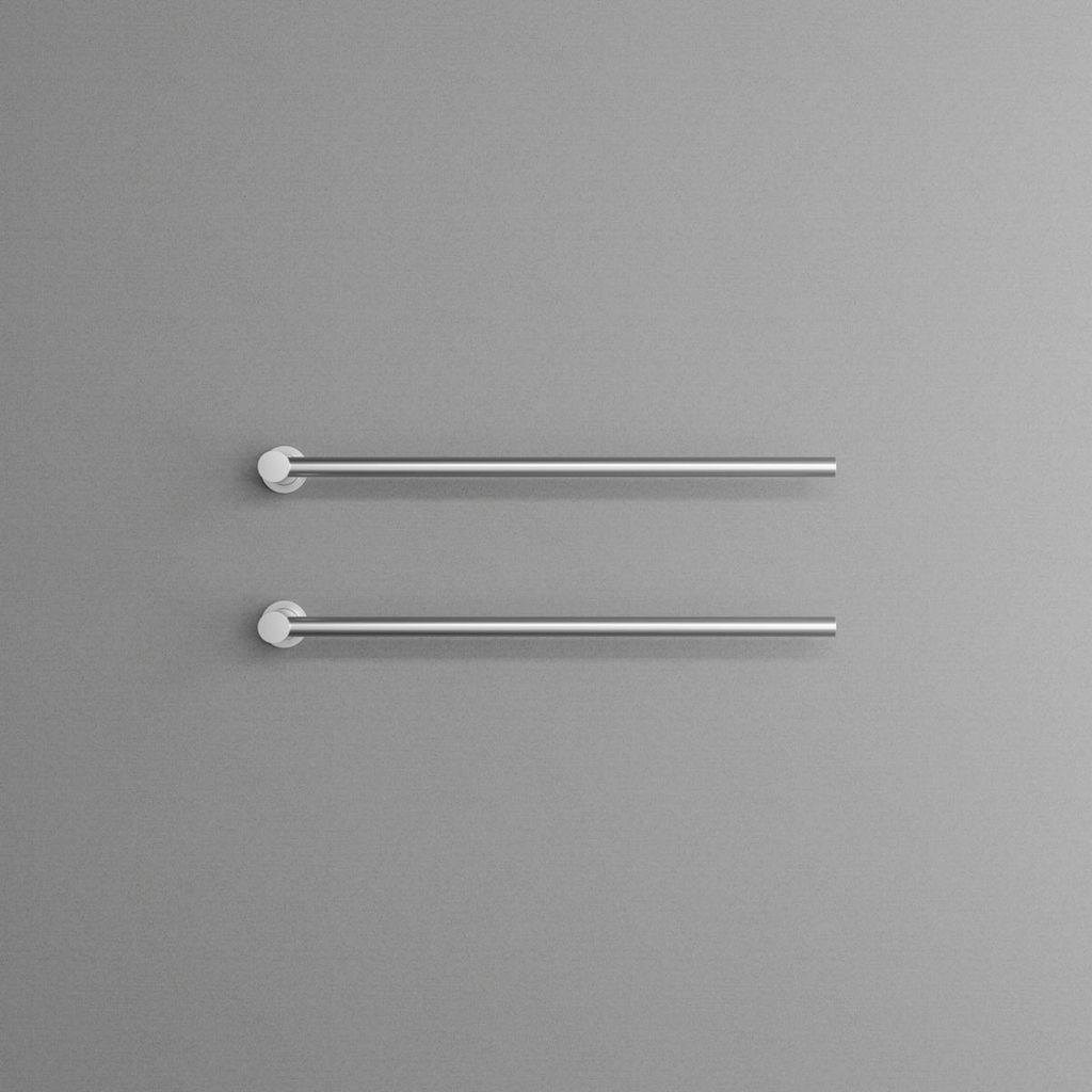 I horisontell modell med justerbara stänger som kan installeras i båda riktningarna för maximal funktionalitet. Idealisk för att hålla handdukar både torra och behagligt varma.