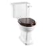 Burlingtons toaletter kombinerar klassisk design av badrumsporsling med modern funktion i form av exempelvis hel- och halvspolning och mjukstängande sits. Pressa vredet uppåt för halvspolning och neråt för helspolning.