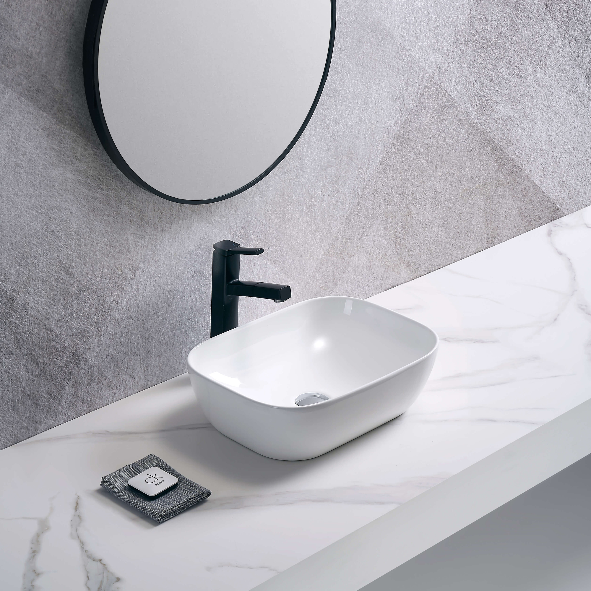 Tvättställ Nourk Rektangulärt Ovanpåliggande är stilrent och lätt att rengöra. Perfekt för bänkmontage och hållbart i porslin.