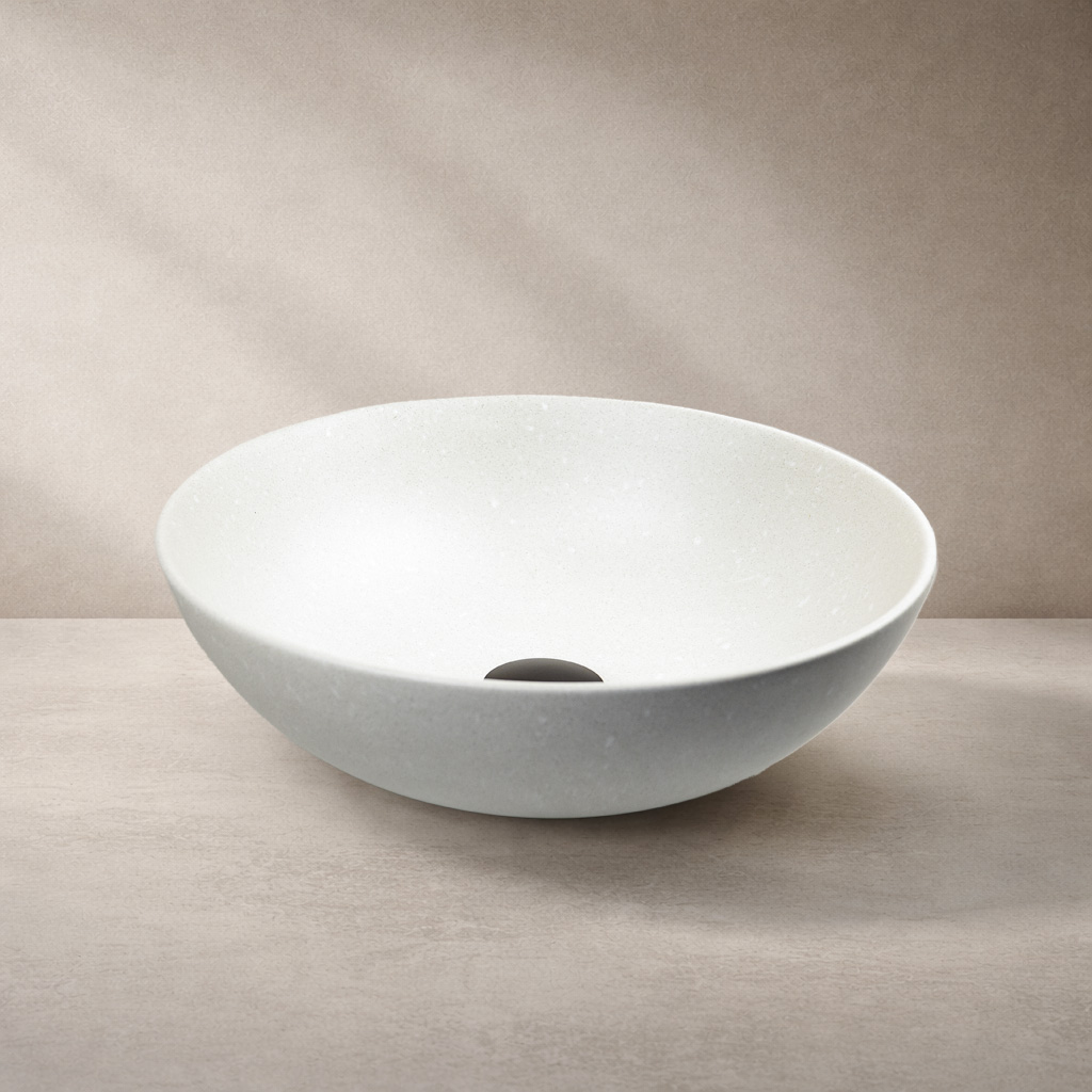 Westerbergs Lera är ett klassiskt, runt och skålformat fristående handfat i vackert matt porslin med tunna, eleganta kanter. Den matta ytan ger ett harmoniskt uttryck och skapar en lugn, lyxig känsla i badrummet. Handfatet monteras på bänkskiva och blir ett vackert inslag som lyfter helheten i badrummet.