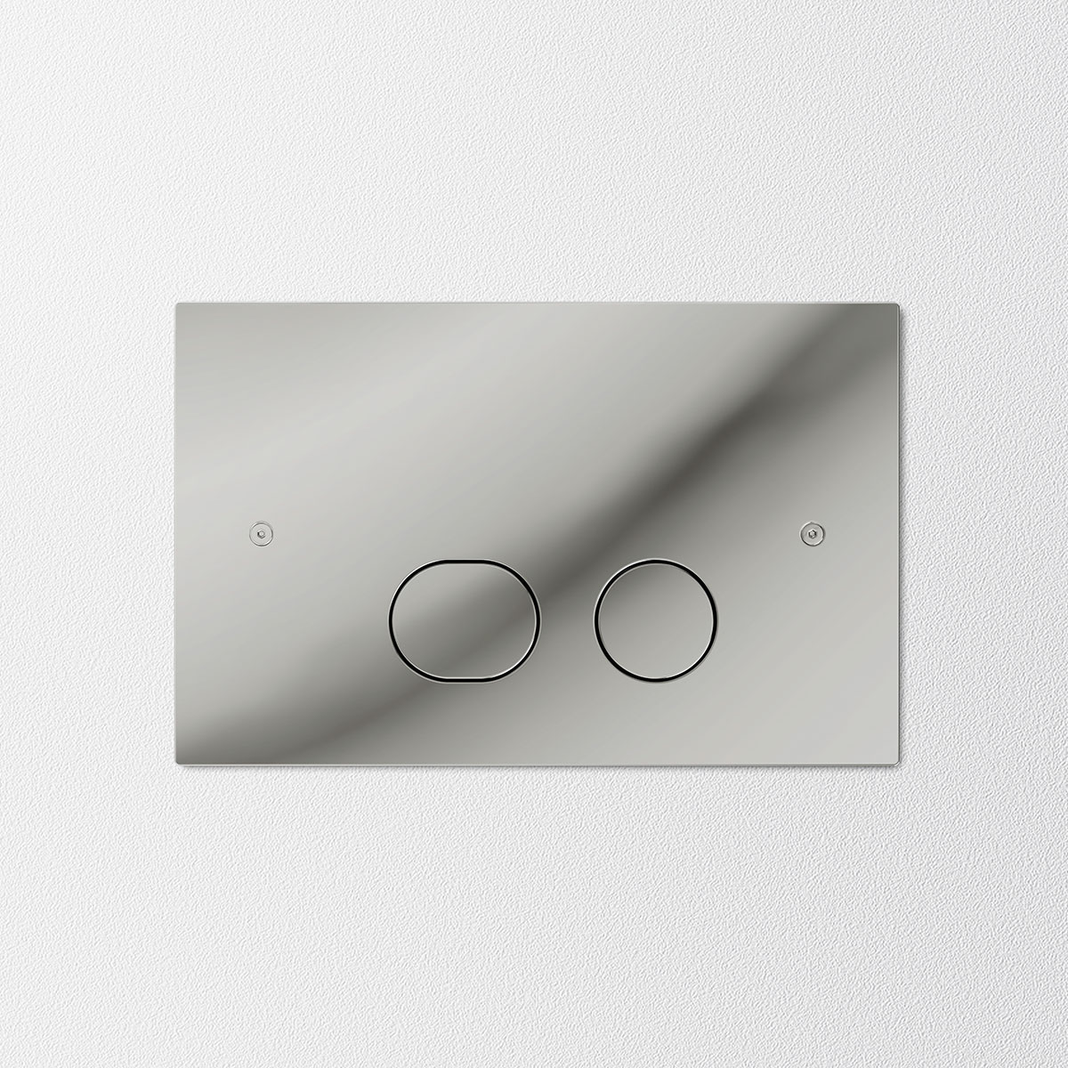Spolplatta för inbyggnad med två stabila knappar för hel- och halvspolning. Tillverkad i rostfritt stål som matchar övriga produkter i samma finish.