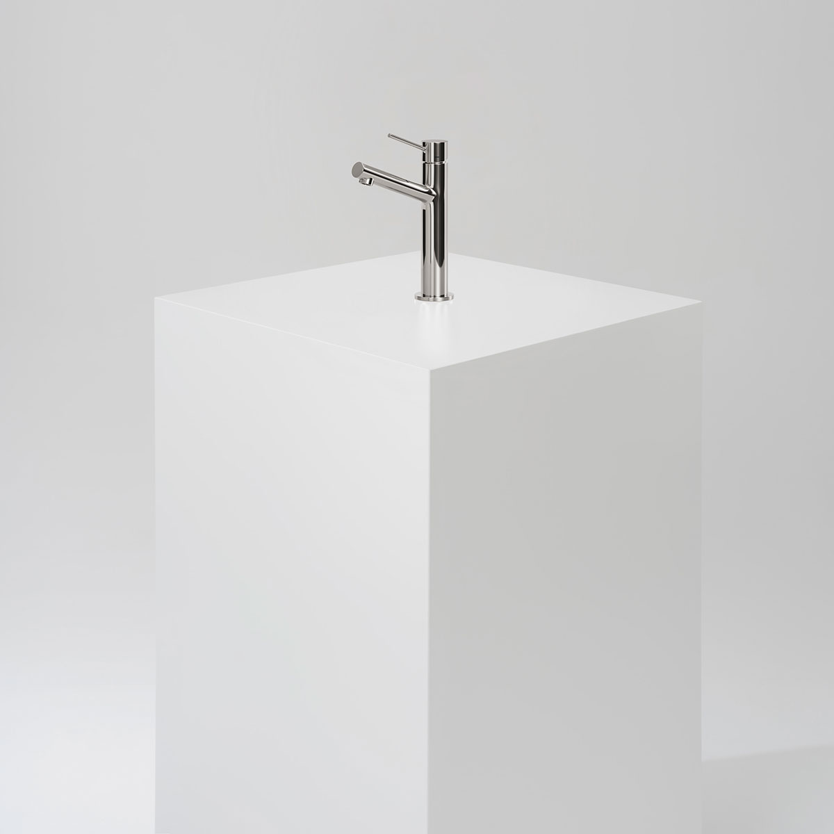 En minimalistisk och exklusiv tvättställsblandare som är tillverkad helt i rostfritt stål och därmed fritt från tungmetaller, som till exempel bly. Produkten är 100% återvinningsbar och innehåller inga ämnen som är skadliga för vare sig naturen eller människan. Rostfritt stål är dessutom det bästa valet utifrån hygienperspektiv.