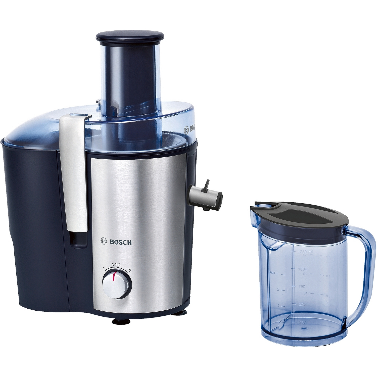 Råsaftcentrifug Bosch MES är en kraftfull råsaftcentrifug med stort påfyllningsrör (73 mm) vilket gör att det krävs mindre förberedelse av frukter och grönsaker. Råvarorna behöver inte förprepareras utan kan berabetas hela. Juicekannan har en volym på 1,25 l och har en skumavskiljare.