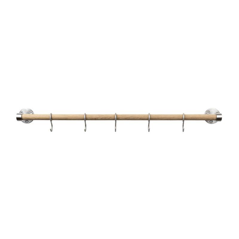 Vill du att relingen ska behålla sin blanka och ljusa nyans går det bra att putsa den lite då och då. Kan kapas ner till önskad längd eller förlängas med hjälp av förlängningskitet (ingår ej, finns som tillbehör). Det går även att köpa till extra krokar. Max belastning 5 kg.