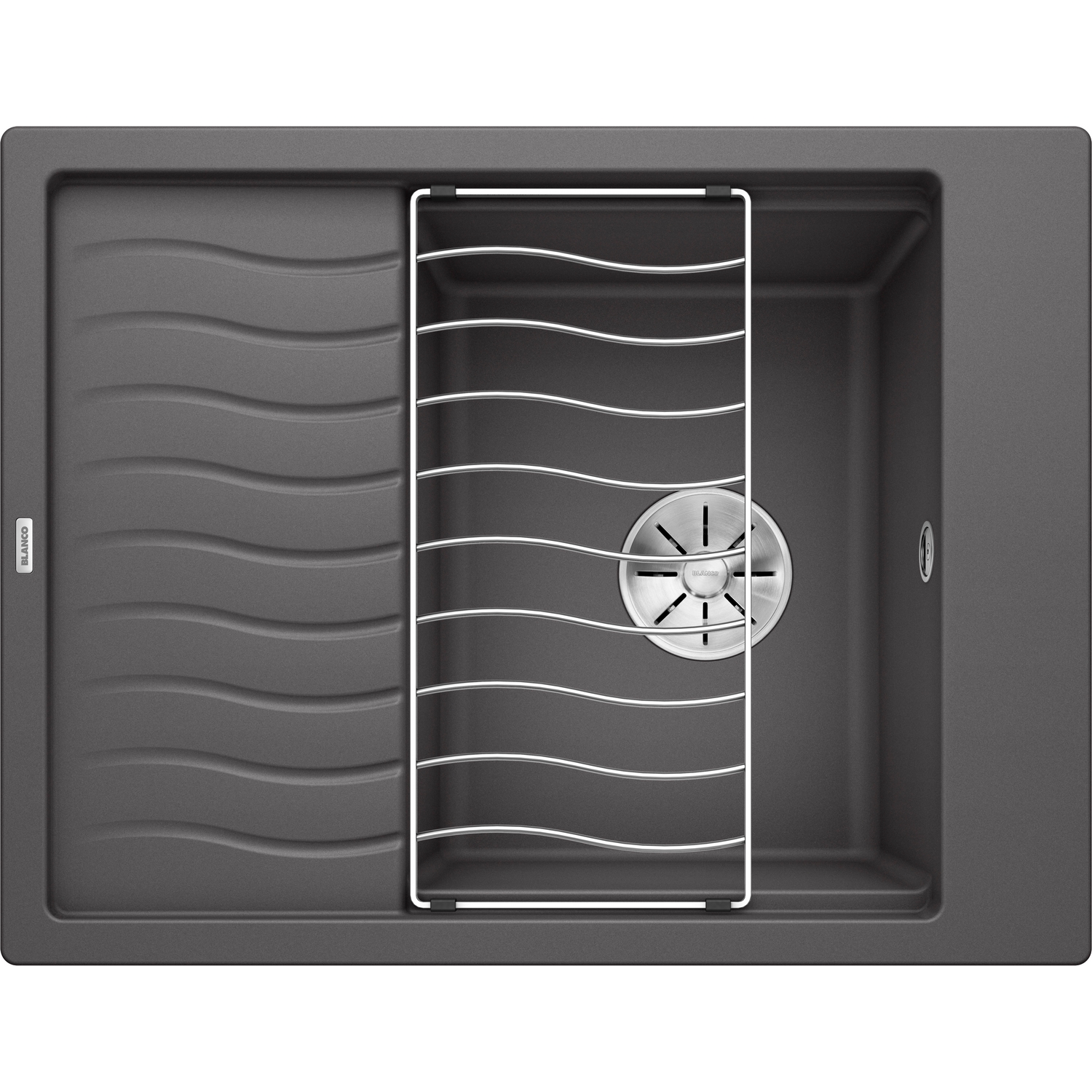 Blanco Elon 45 S InFino är en kompakt enkelho med avrinningsyta. Diskbänken har en praktisk och stor ho med avrinningsgaller. Tack vare det rörliga gallret i rostfritt stål skapas extra avställningsyta ovanför hon. Den har en modern, vågformad design på diskho och galler som matchar varandra perfekt. Det finns en bredare kant vid sidan av hon för placering av blandaren, perfekt vid installation under ett fönster. Diskbänken är dessutom vändbar, du kan placera den med hon till vänster eller höger.