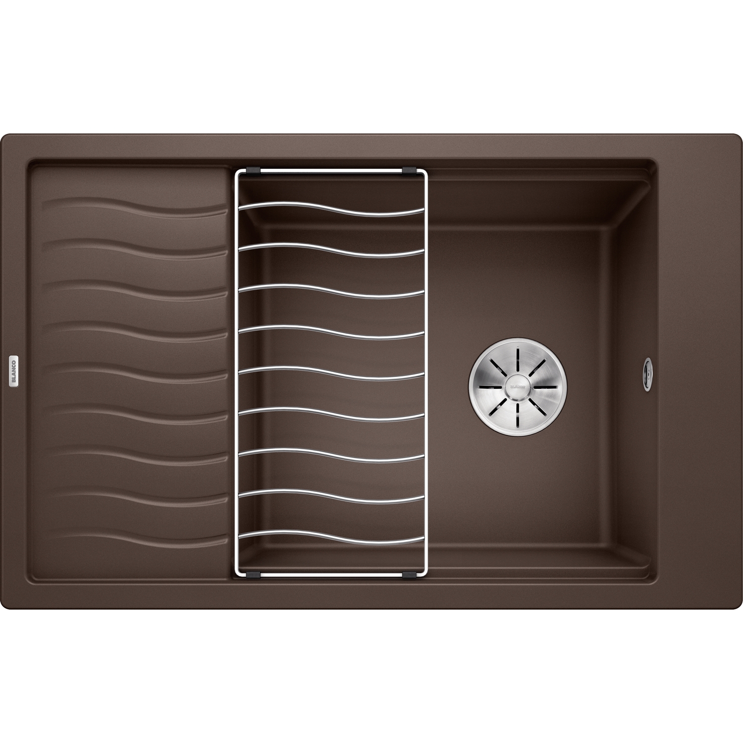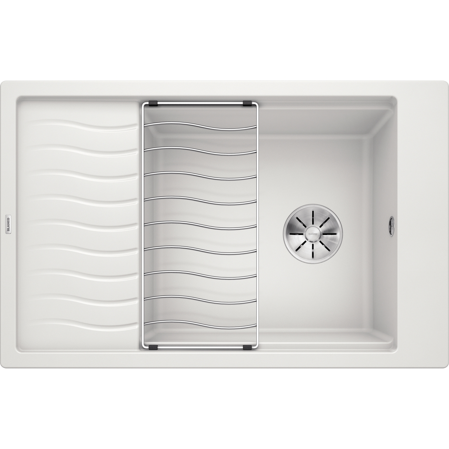Blanco Elon XL 6 S InFino är en kompakt enkelho med avrinningsyta. Diskbänken har en praktisk och stor ho med avrinningsgaller. Tack vare det rörliga gallret i rostfritt stål skapas extra avställningsyta ovanför hon. Den har en modern, vågformad design på diskho och galler som matchar varandra perfekt. Det finns en bredare kant vid sidan av hon för placering av blandaren, perfekt vid installation under ett fönster. Diskbänken är dessutom vändbar, du kan placera den med hon till vänster eller höger.