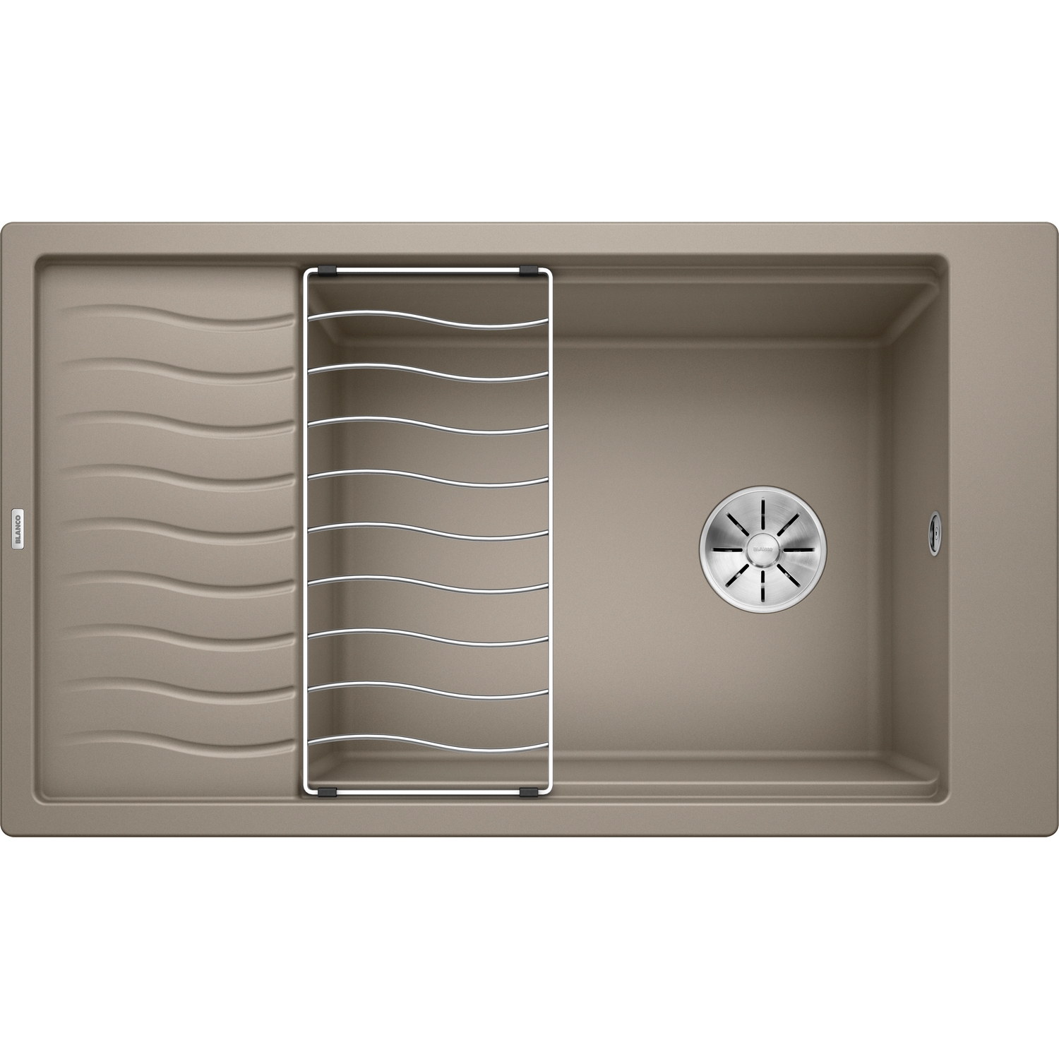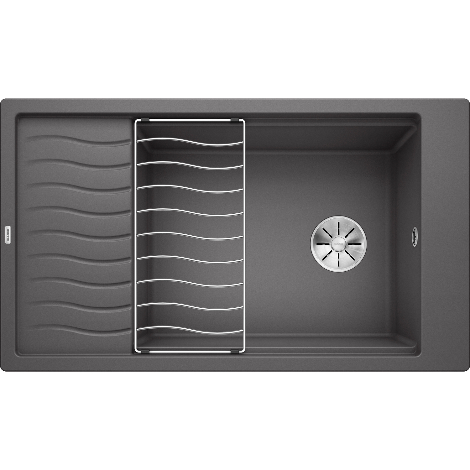 Blanco Elon XL 8 S InFino är en kompakt enkelho med avrinningsyta. Diskbänken har en praktisk och stor ho med avrinningsgaller. Tack vare det rörliga gallret i rostfritt stål skapas extra avställningsyta ovanför hon. Den har en modern, vågformad design på diskho och galler som matchar varandra perfekt. Det finns en bredare kant vid sidan av hon för placering av blandaren, perfekt vid installation under ett fönster. Diskbänken är dessutom vändbar, du kan placera den med hon till vänster eller höger.