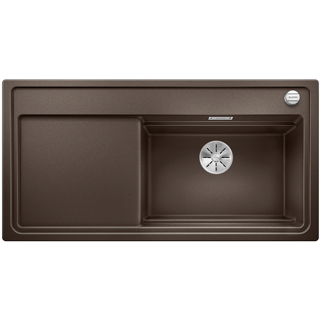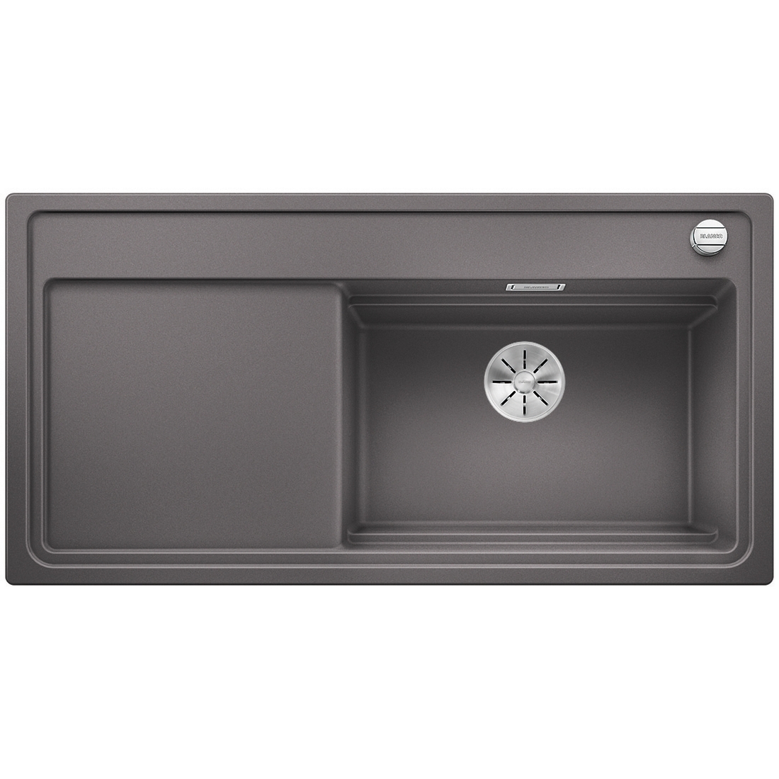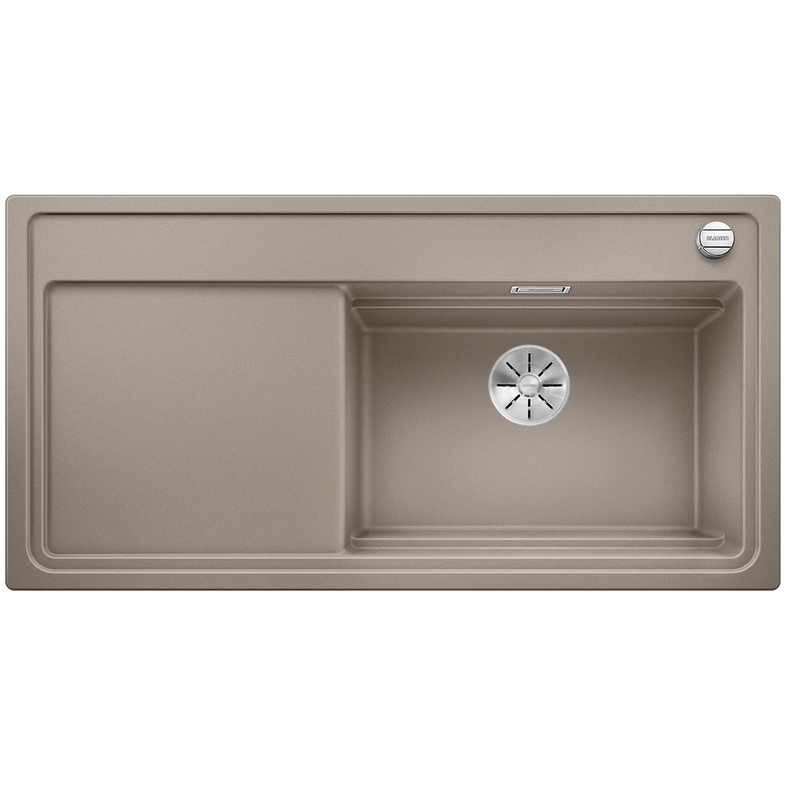 Detta är en multifunktionsdiskbänk med genomtänkt design och praktiska tillbehör. Diskbänken har en stor diskho med rymlig avrinningsyta i stilren utformning. Styrning av korgventilens öppning och stängning ovan bänk så att du slipper stoppa ner händerna i diskvattnet när du diskat färdigt. Dessutom har diskbänken Blancos patenterade InFino-avloppssystem.