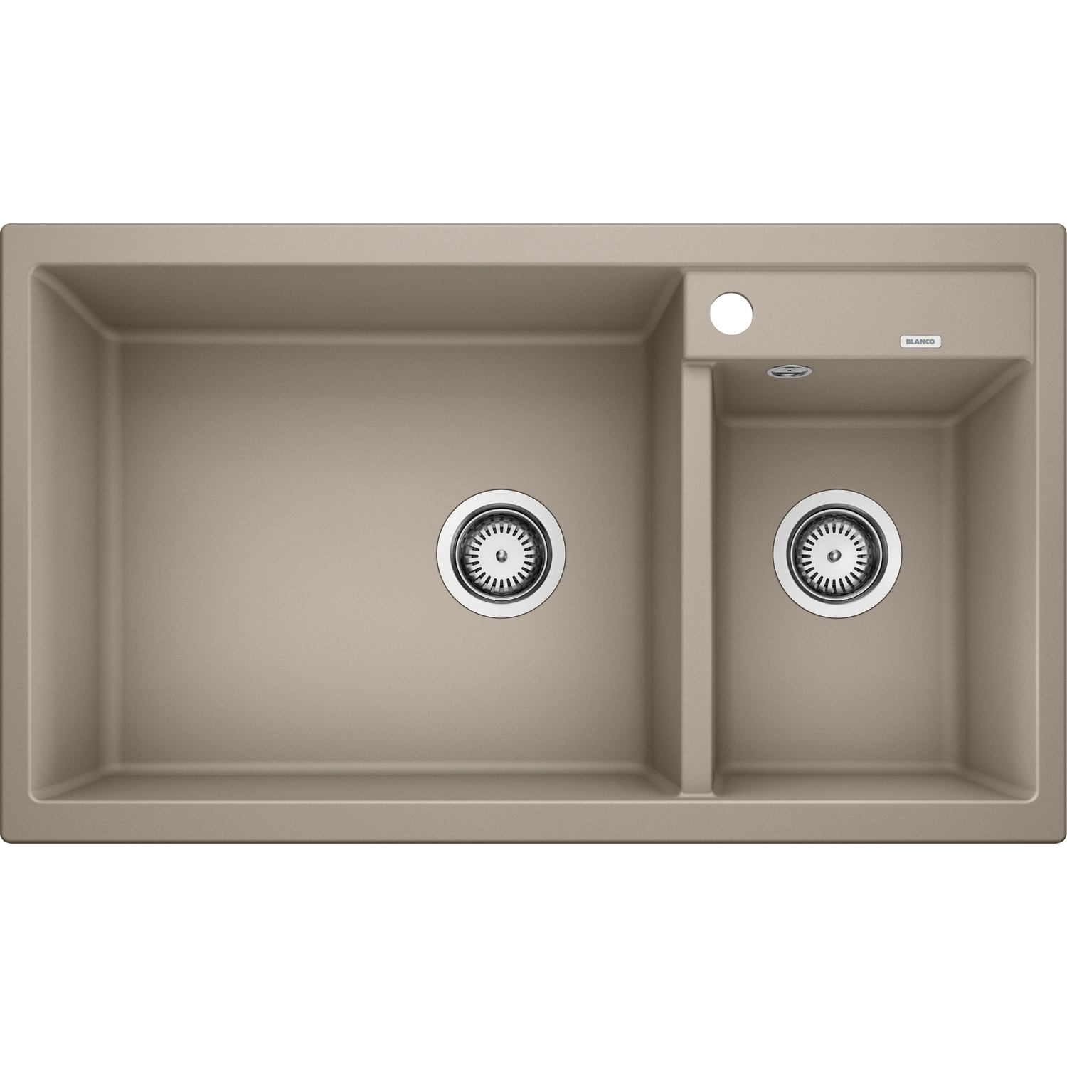 Blanco Metra 9 är en stilren och snygg diskho med två disklådor. Den har 3½" avlopp med korgventil och ett förborrat hål för blandare.