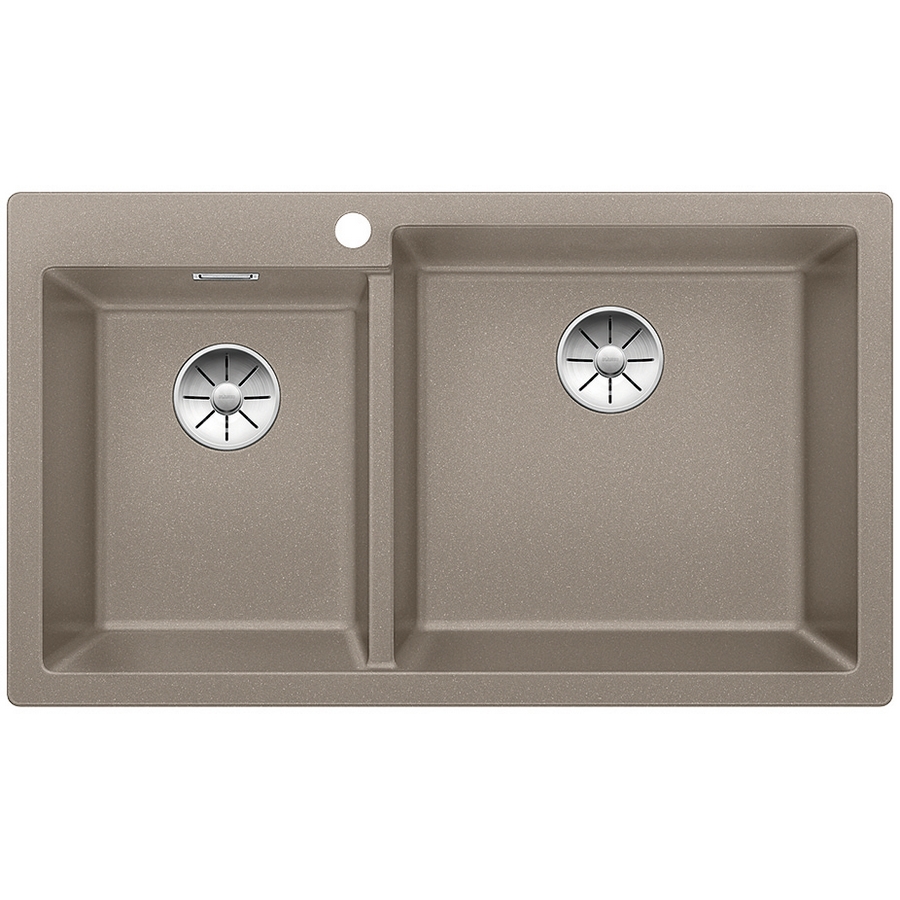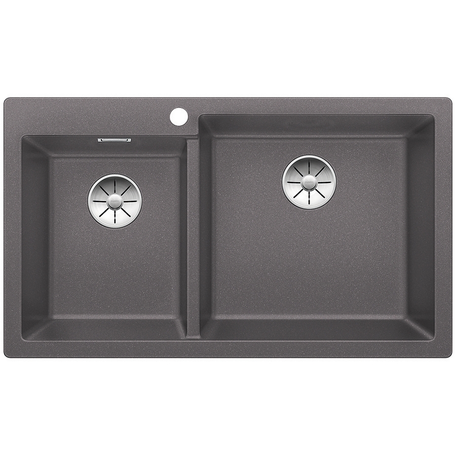 Blanco Pleon 9 Silgranit InFino Dubbel är en dubbel diskho i tidlös design med rena linjer. Diskhon har en större låda till höger och en lite mindre till vänster. Det är en extra djup diskho med en smal genomgående bakpanel med förborrat hål för blandare. Diskhon har dessutom ett breddavlopp och det patenterade InFino-avloppssystemet med elegant utformad korgventil.