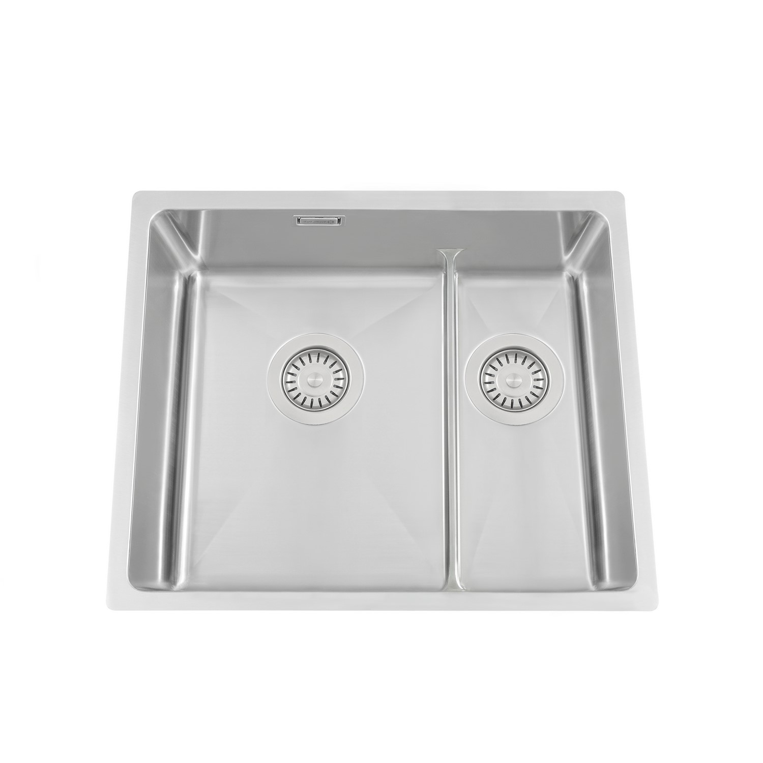 Diskho Nordic Tech Titan 53 K X Nickel är en praktisk premiumlåda som har en borstad yta och en kryssknäckt botten. Den har en låg mellanvägg som gör att den kan användas som en större disklåda för t.ex. plåtar och grillgaller. Diskhon levereras med vattenlås, korgventil och bräddavloppsanslutning.