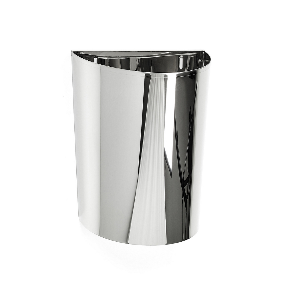 Papperskorg Habo 50 är en stilren papperskorg av rostfri plåt som levereras med väggfäste för montage på vägg eller på skåpslucka.