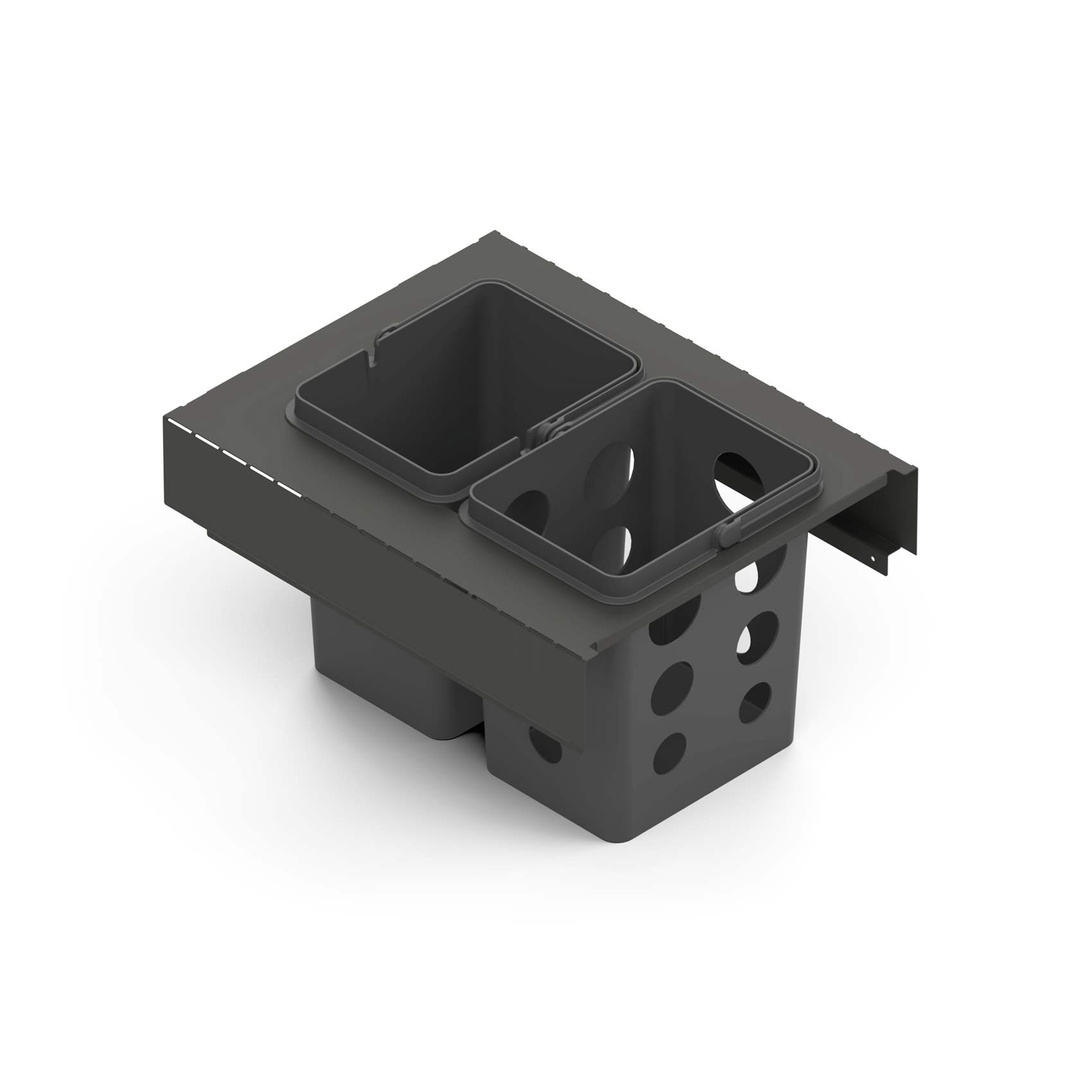 Toledo finns i två olika djup, vilket gör att den både passar grundare lådor med djup på 35 cm för tex diskbänkskåp samt lådor med djup från 45 cm. Tillverkade i Sverige; ram i plåt och hinkar i återvunnen PP-plast.
