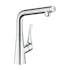 Köksblandare Hansgrohe Metris Select 320 är en ettgreppsblandare med stilren och modern design, vertikal handtagspositionering. Den är utrustad med hög och svängbar L-pip med Select-knapp, knappen tillåter dig att komfortabelt starta/stoppa vattenflödet. Köksblandaren levereras utan diskmaskinsavstängning, detta kan köpas till separat som tillval.