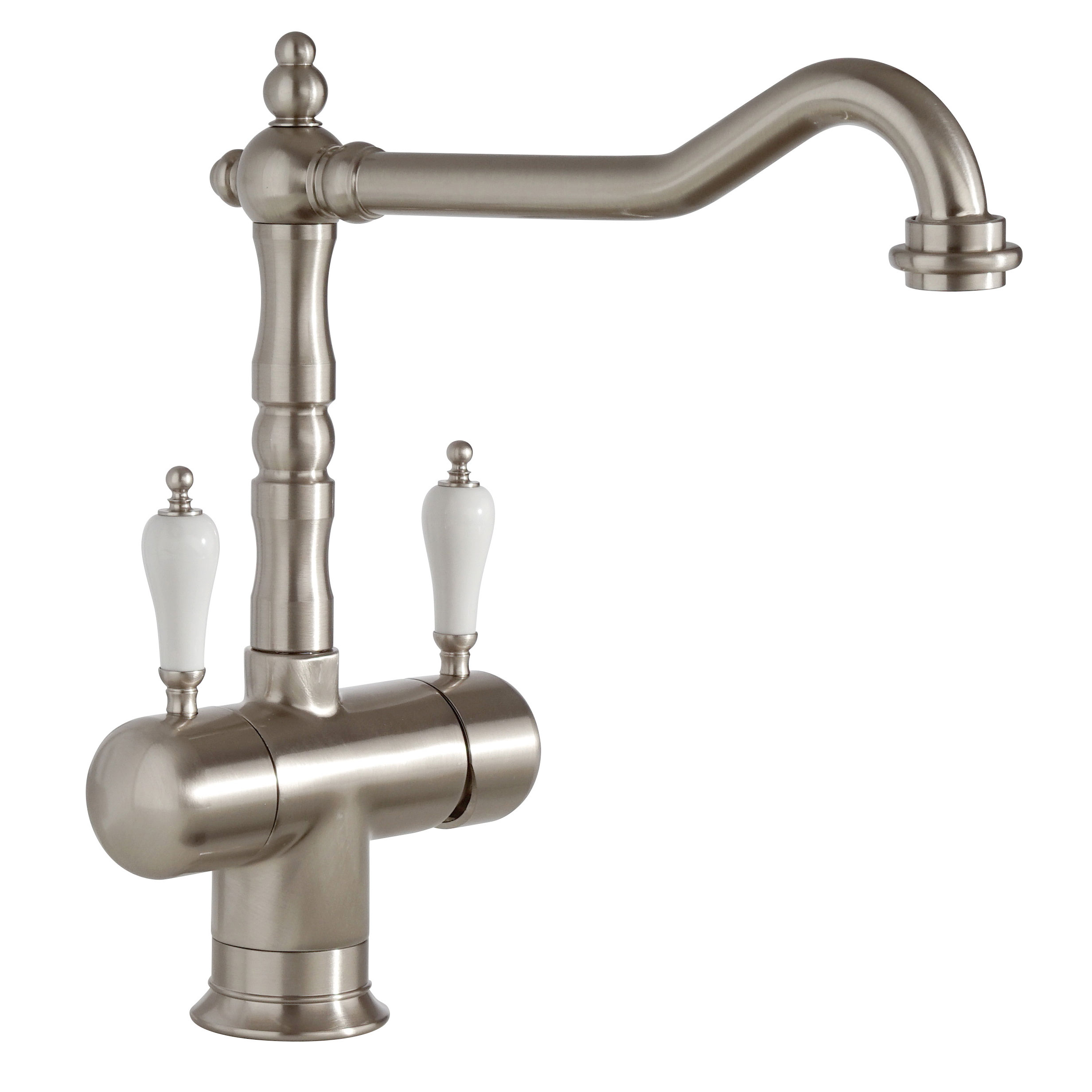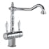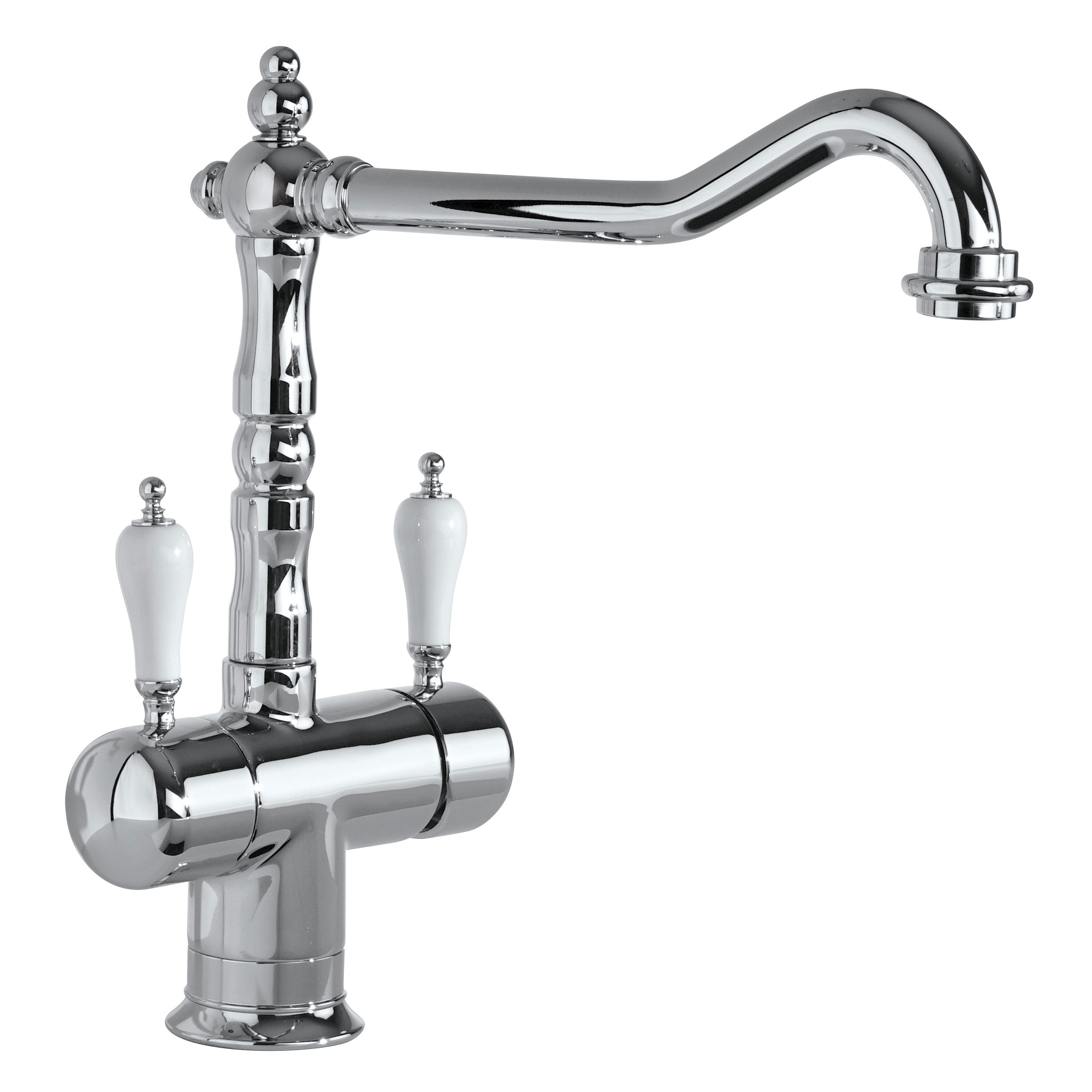 Köksblandare iCrolla Oslo Retro är en tvågreppsblandare i retrodesign med lantlig karaktär och L-formad pip samt integrerad diskmaskinsavstängning. Den är tillverkad i Italien av högkvalitativ mässing och har keramisk tätning för rätt vattenflöde och bekvämt grepp. Blandaren är trycktestad att klara 35 bar hydrailiskt tryck och A-klassad för energibesparande. Kranen är svängbar 160 grader.