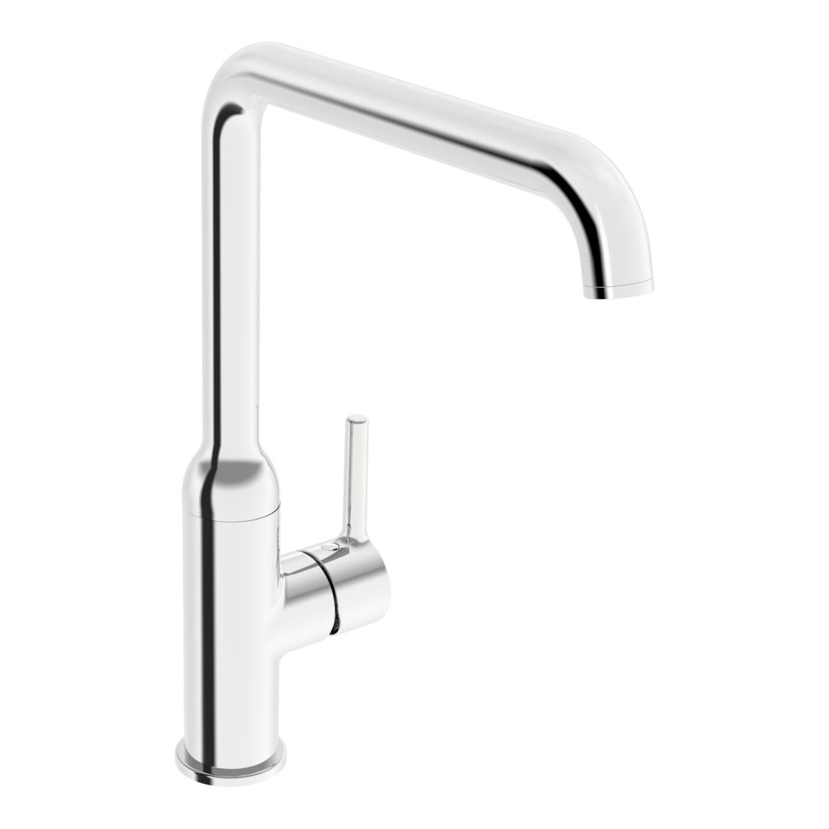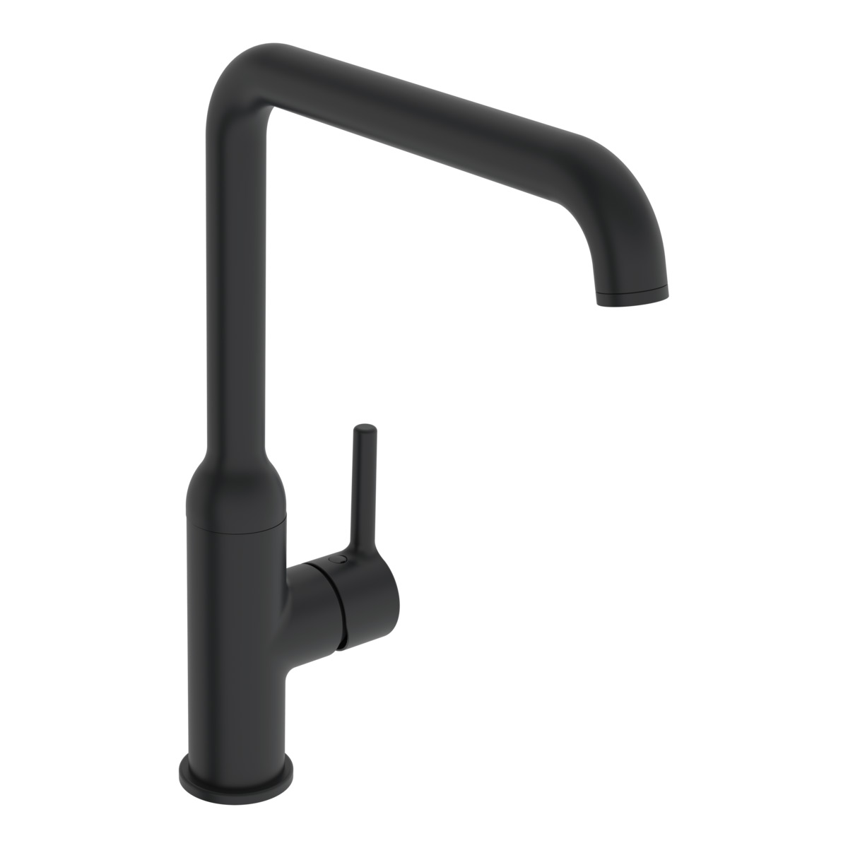 Utloppspipens svängradie är förinställd på 120° (kan begränsas till 0°/60°/360°). Den har en inbyggd spärr för begränsning av temperatur och flöde via Oras 3.0 keramiska kassett. Dess exklusiva design gör att den passar in i de flesta kök.