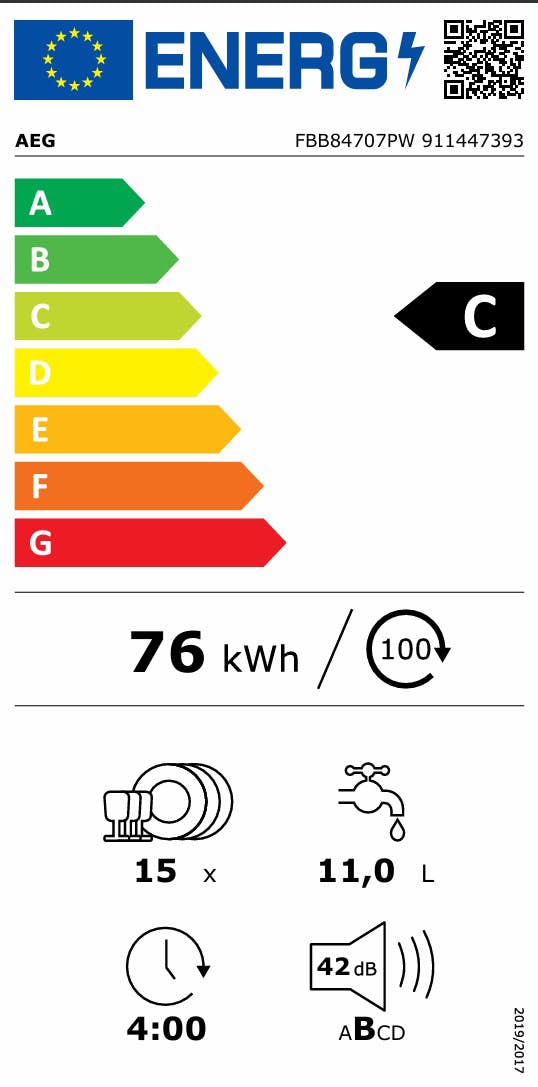 Integrerad Diskmaskin AEGFBB84707PW 60 cm med SprayZone och SatelliteClean