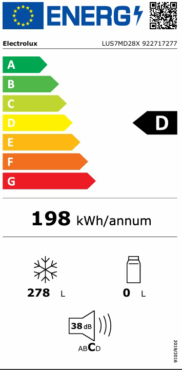Electrolux 700 NoFrost har energiklass D och en ljudnivå på endast 38 dB(A), vilket gör den till en energisnål och tyst frys som passar alla typer av hem. Kompressorn har 10 års garanti, vilket garanterar långvarig prestanda och trygghet.