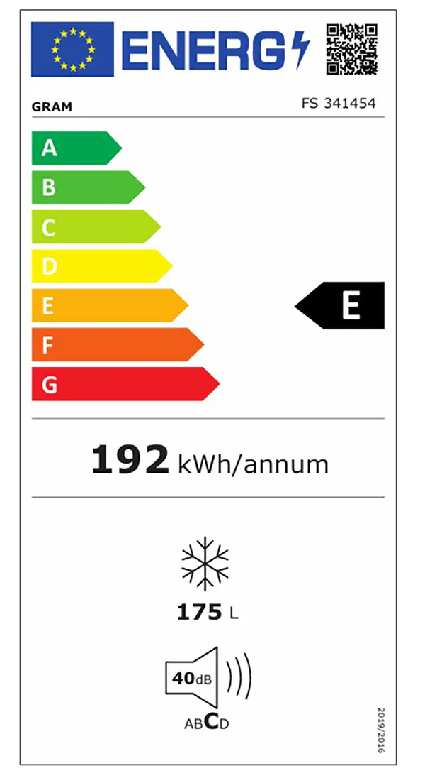 GRAM FS 341454 är en fristående frys med nettovolym på 175 liter, ilket ger gott om plats för att förvara dina frysvaror på ett organiserat och lättillgängligt sätt. Den är ett utmärkt val för både mindre hushåll och som extra frys i t.ex. källare, garage eller sommarstuga.