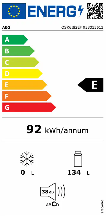 Energiklass E säkerställer låg energiförbrukning samtidigt som du får optimal kylprestanda.