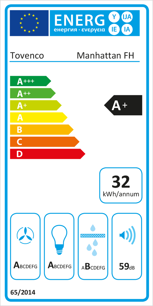 - Årlig energiförbrukning (AEC): 32kWh/år