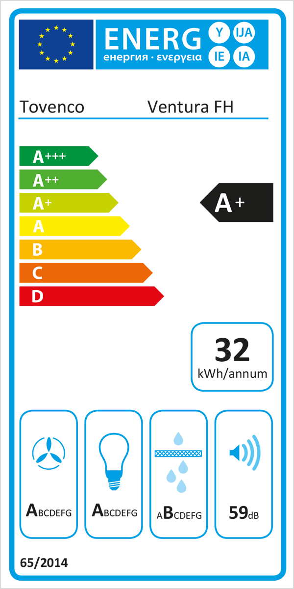- Årlig energiförbrukning (AEC): 32 kWh/år
