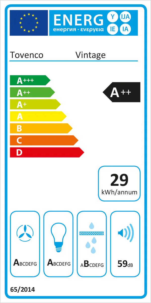 - Årlig energiförbrukning (AEC): 29kWh/år