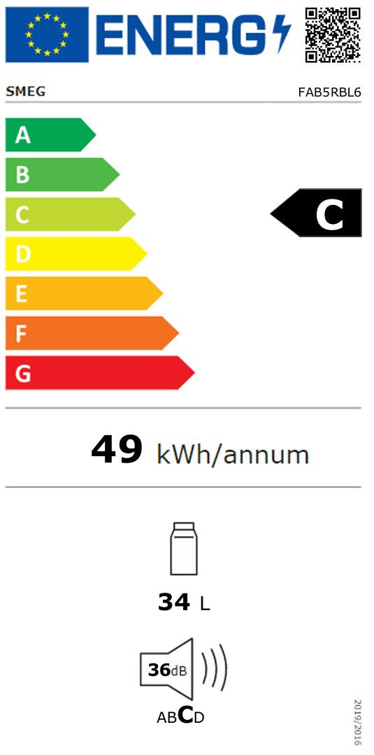 - Tyst drift med ljudnivå på endast 36 dB Smeg FAB5RBL6 är ett kompakt fristående kylskåp i den klassiska 50s Style-serien. Med sin högblanka svarta finish, rundade former och kromdetaljer blir det en elegant inredningsdetalj som passar perfekt i kök, kontor eller som extra kyl i hemmet.