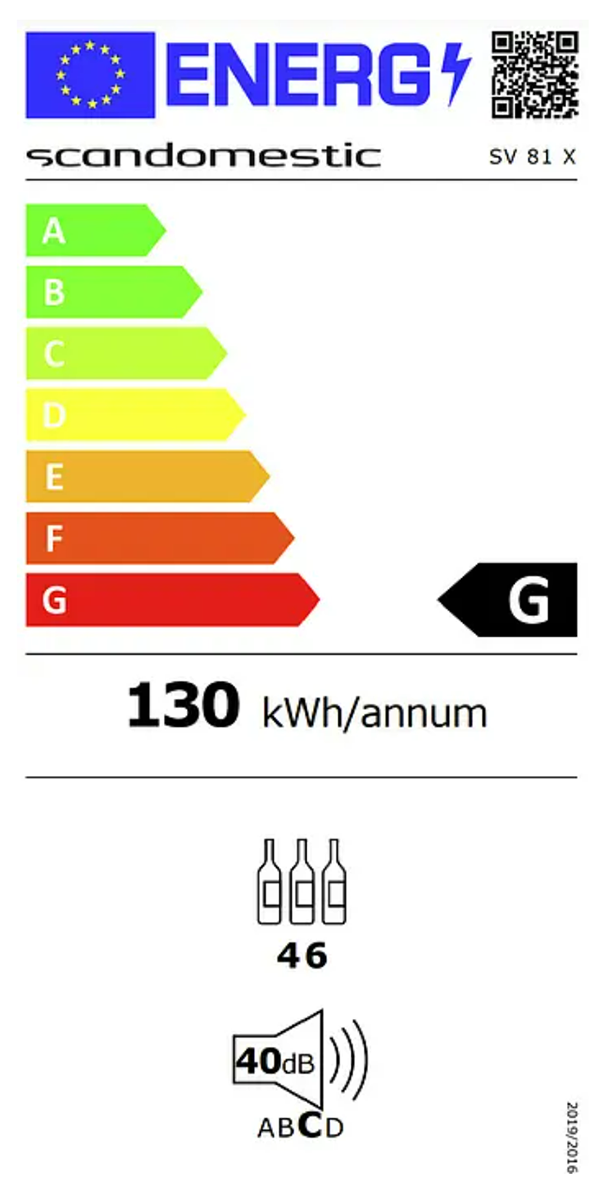 - Inbyggningsbar vinkyl med kapacitet för upp till 46 flaskor