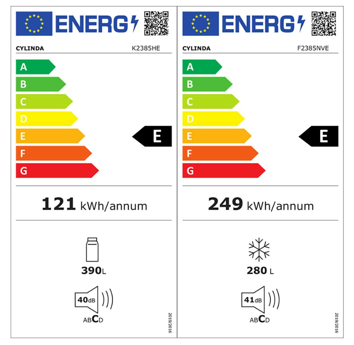 Cylinda K2385HE och F2385NVE är ett klassiskt och enkelt kyl- och fryspaket med en höjd på 186 cm. Paketet erbjuder stora och rymliga hyllor och låder som ger dig tillräckligt med plats för att lagra allt från färska grönsaker till dina favoriträtter. Kylen är utrustad med LED-belysning och dynamisk kylning, medan frysen har en stor låda och självavfrostning. Båda enheterna är också omhängningsbara, så du kan enkelt anpassa dem efter dina behov.