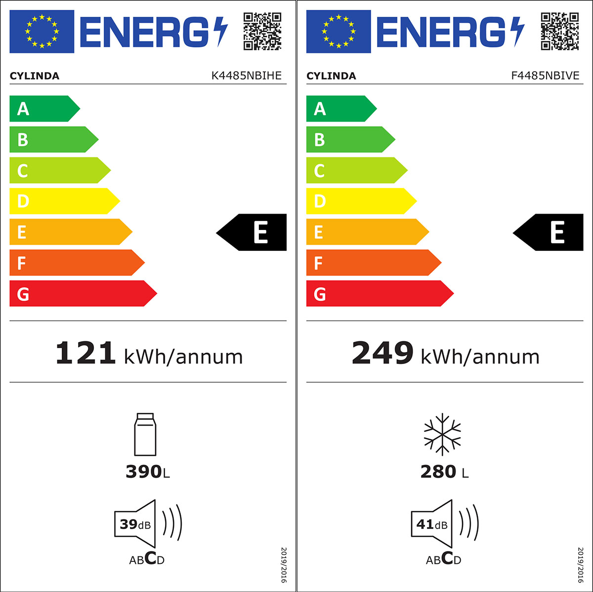 Fördelar: Kyl & Frys Paket Cylinda K4485NBIHE + F4485NBIVE Black Steel