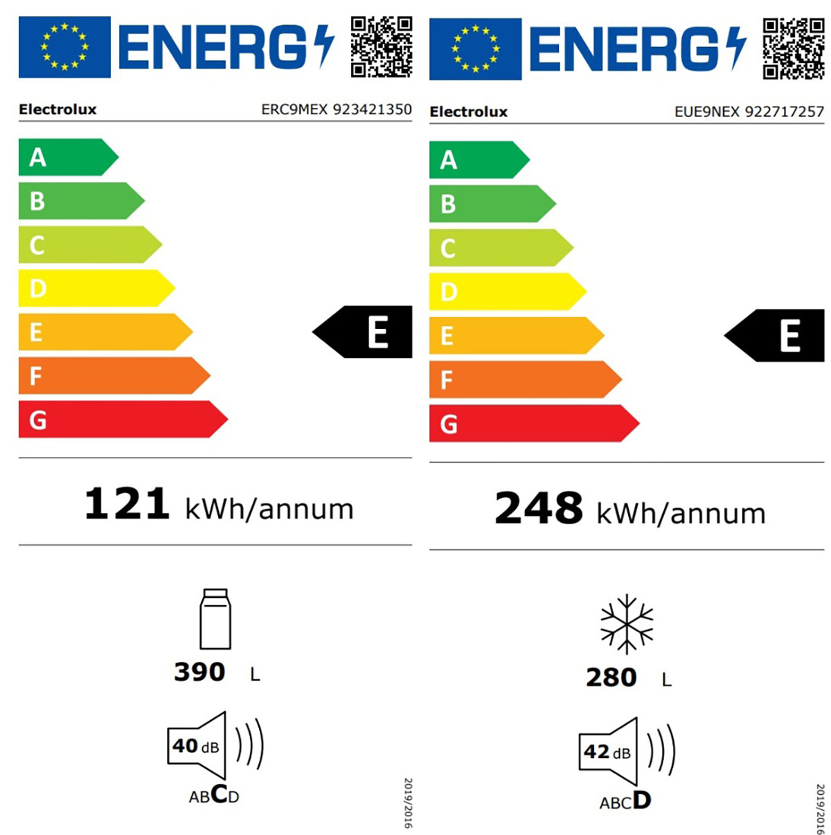 Premium kyl och frys från Electrolux. Electrolux ERC9MEW och EUE9NEW erbjuder premiumkyl- och frysfunktioner för optimal matförvaring. ERC9MEW har 700 MultiFlow-teknik som håller en stabil temperatur och bevarar maten bättre, medan EUE9NEW har No Frost förhindrar isbildning i frysen för enklare underhåll. Båda enheterna har en snabböppnande dörr för enkel åtkomst och exklusiv LED-belysning för bättre synlighet.