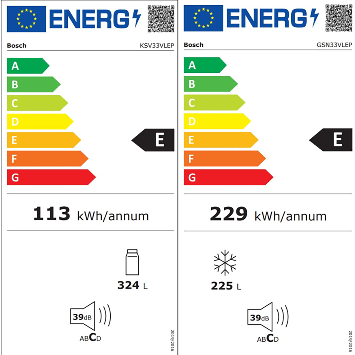 Bosch paket med kyl och frys KSV33VLEP + GSN33VLEP. Kylskåp med VitaFresh Box: kyler väldigt effektivt och tack vare denna speciella låda kommer din frukt och dina grönsaker att hålla sig fräscha längre. NoFrost frys med elektronisk temperaturstyrning, ställ enkelt in exakt temperatur.