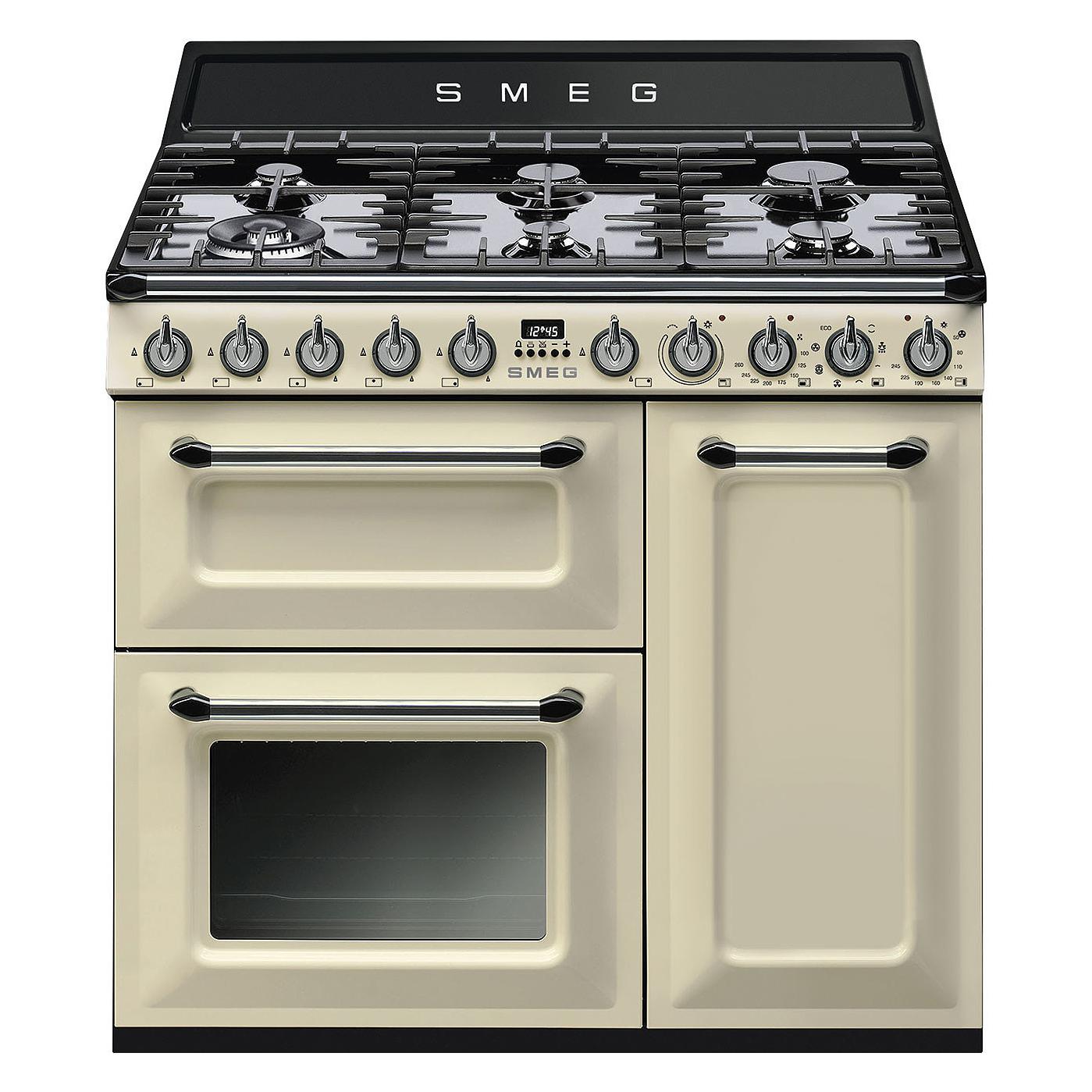 Gasspis Smeg Victoria TR93 är en snygg och praktisk gasspis till ditt hem. Smeg Victoria tillhör den populära serien Victoria. Produkten är utrustad med: lättare rengöring av ugnsglas med löstagbart innerglas, vapor clean - ångan lossar spilld och bränd mat på insidan, innerlucka i lättrengjort helglas, ugnslucka med 3 skikt glas för en effektivare, tystare och säkrare ugn, utrustad med luftkylsystem för säker yttemperatur, nedvikbart grillelement underlättar rengöring, ugnens insida har en lättrengjord emaljbeläggning, ställ in temperatur med hög precision med hjälp av elektrisk värmereglering, kraftiga gjutjärnsgaller för maximal stabilitet och styrka, eco-läge för tilllagning av midre mat och utrustad med extra snabba brännare för att kunna uppnå önskad temperatur snabbare.