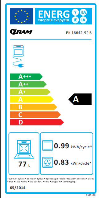Energiförbrukning för uppvärmningsfunktion, standardtest, traditionell/multifunktion (watt): 0,99/0,83