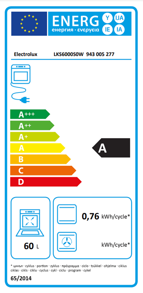 | Energiförbrukning för konventionell ugn | 0,76 kWh |