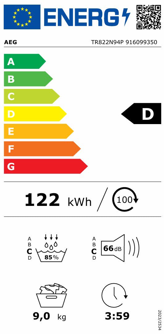 Värmepumpstumlare AEGTR822N94P med AbsoluteCare® och SensiDry® Teknologi