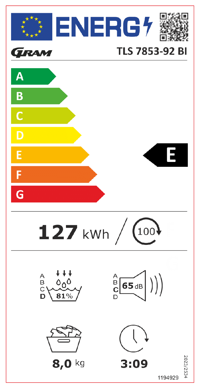 Gram TLS 7853-92 BI värmepumpstumlare. En torktumlare som är utrustad med kolfri motor använder mindre energi och har längre livslängd. Dessutom är en kolfri motor extra tyst. Den extra stora lucköppningen gör det enkelt både att fylla och tömma torktumlaren.