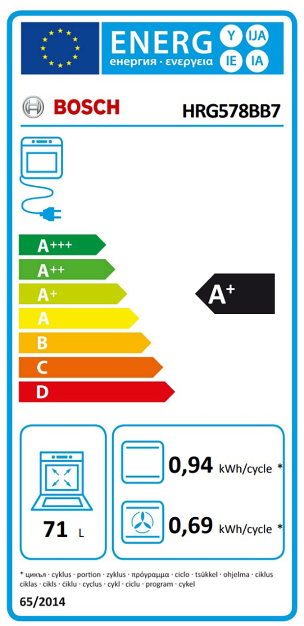 | Energiförbrukning för varmluftsugn | 0.69 kWh |