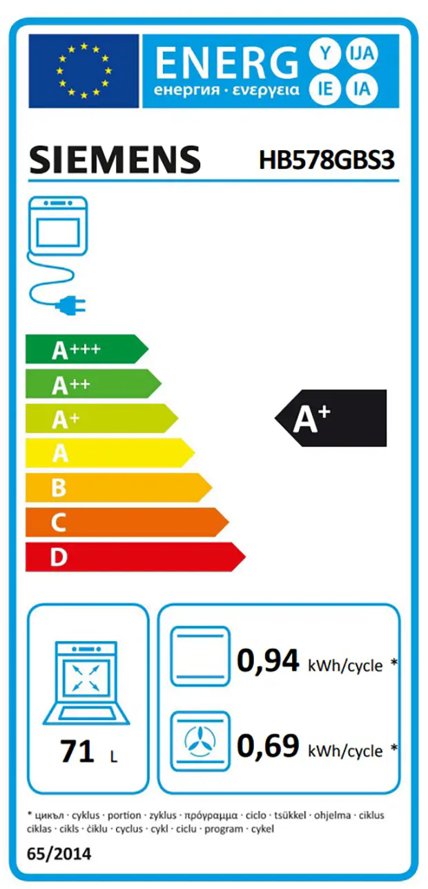 | Energiförbrukning för varmluftsugn | 0.69 kWh |