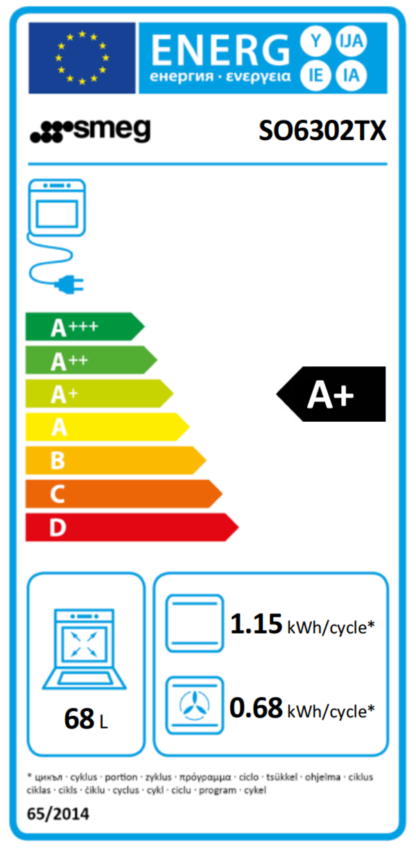 - Energiförbrukning i fläktforcerat konvektionsläge: 0.68 KWh