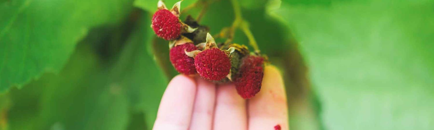 Autumn Bliss är ett hösthallon som ger mörkröda saftiga bär från augusti till oktober.
